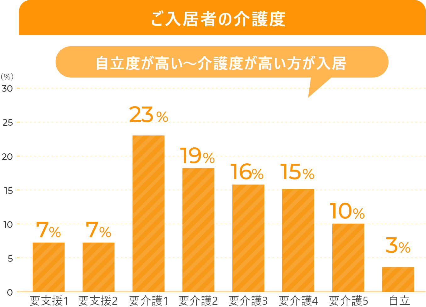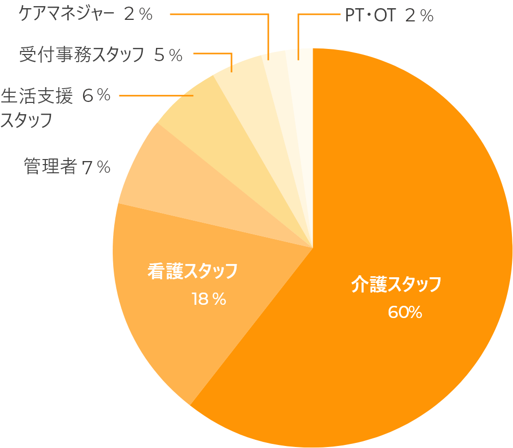 自立度が高い方から介護度が高い方が入居されているため、専門的な知識・技術の取得に加えて多職種が連携してご入居者一人ひとりに合ったケアをご提供します。