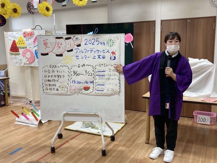 今年も恒例の夏祭りイベントを実施し、ご利用者に楽しんでいただけるように射的や輪投げ、すいか割りなどの準備を行いました。
