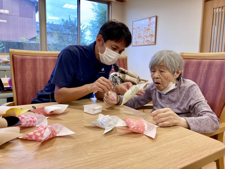 縁日用のチケットやおみやげも手作りし、「どうせなら一緒に作りましょう!」とご入居者の皆さまにもご協力いただき、まさに“共につくるお祭り”となりました。