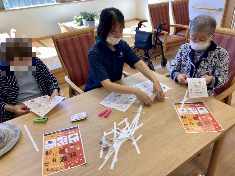 アルファリビング高松松縄でも、ご入居者の皆さまに秋の雰囲気を楽しんでいただきたいという思いから、スタッフ一同で秋祭りを企画しました。