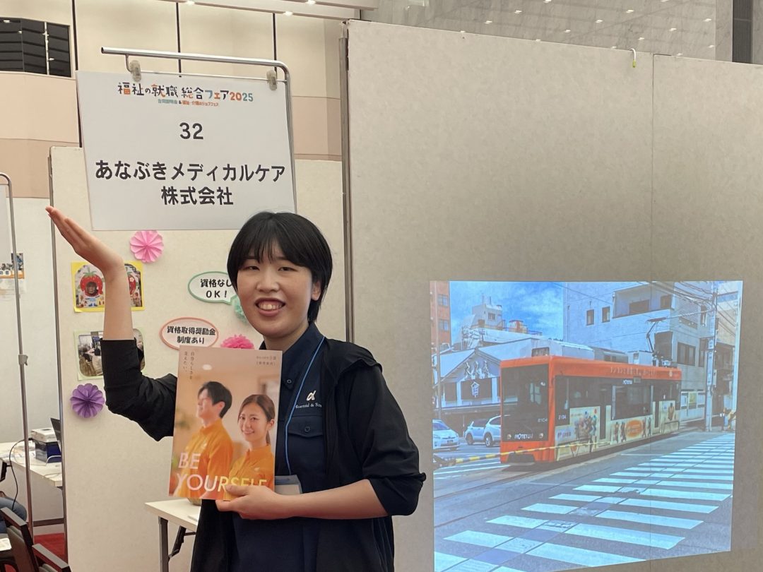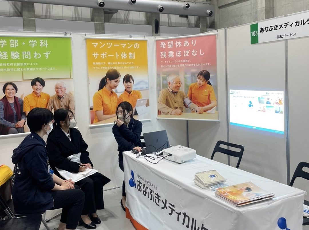 私自身も「あなぶきメディカルケア」という会社を初めて知ったきっかけは、今回参加させていただいたような、新卒を対象とした会社合同説明会でした。