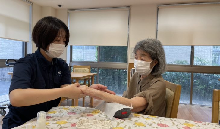 入社当初は覚える事が沢山あり奮闘する日々でしたが、少しずつ仕事に慣れ、ご利用者を見守りながらそっと手をさしのべる姿に“たなかさんらしさ”を感じます。