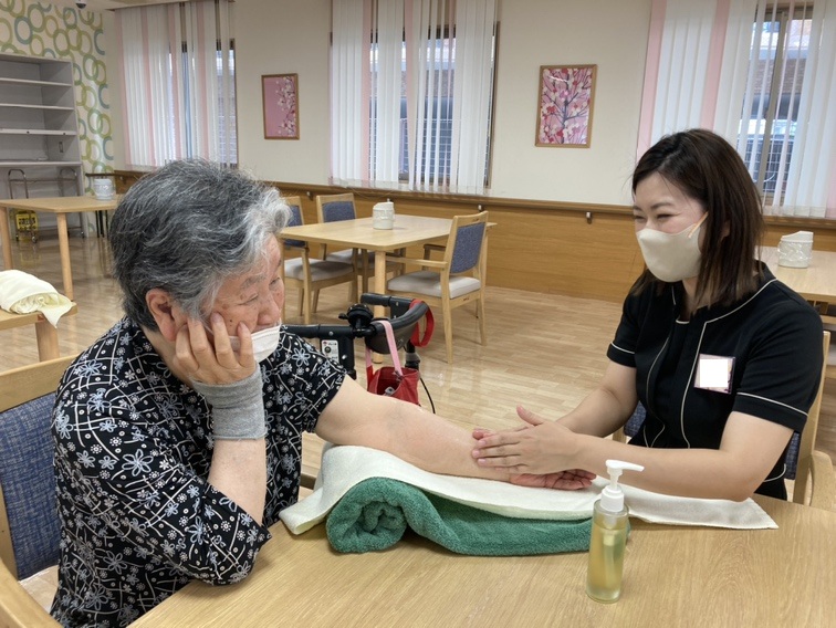 福祉施設へエステやハンドマッサージのボランティア活動をされている「ココサロ」のセラピストの方々が、ハンドマッサージをしに来てくださいました。