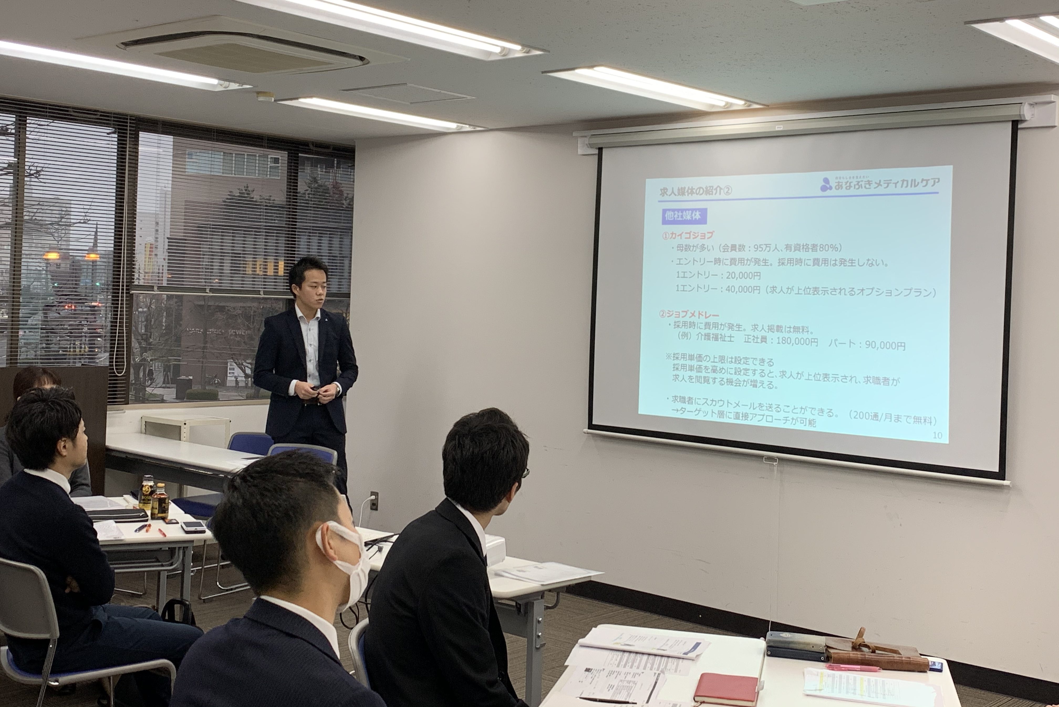・大勢の施設長の前で話すことが初めてだったので、少し緊張した。伝えたいことを自分の言葉で表現することの難しさを改めて感じた。採用活動は「ファン作り」、採用活動で工夫できることや応募者のニーズに応える活動を考えるきっかけになれば良かった。(人事広報部 ひぐま)