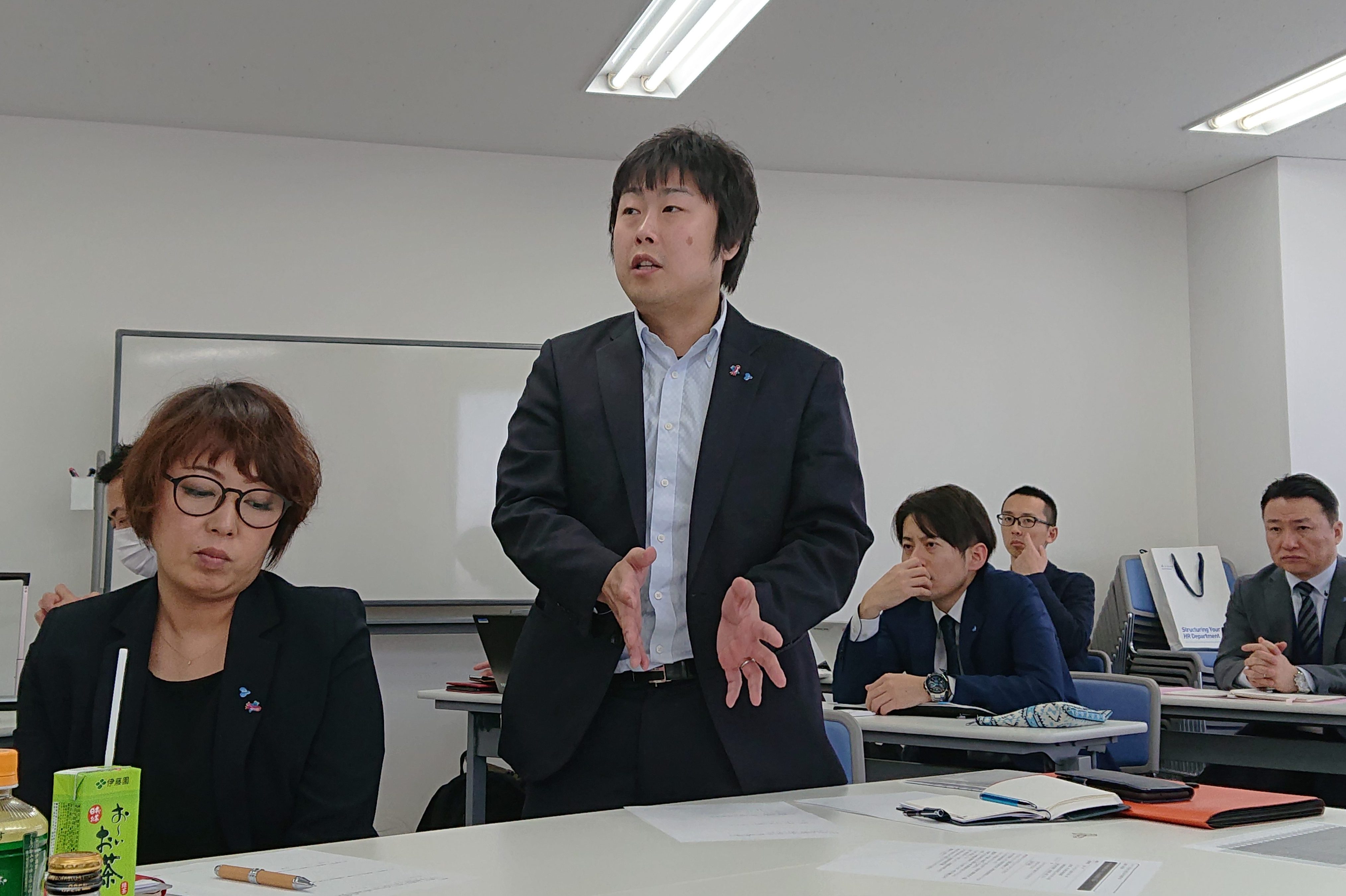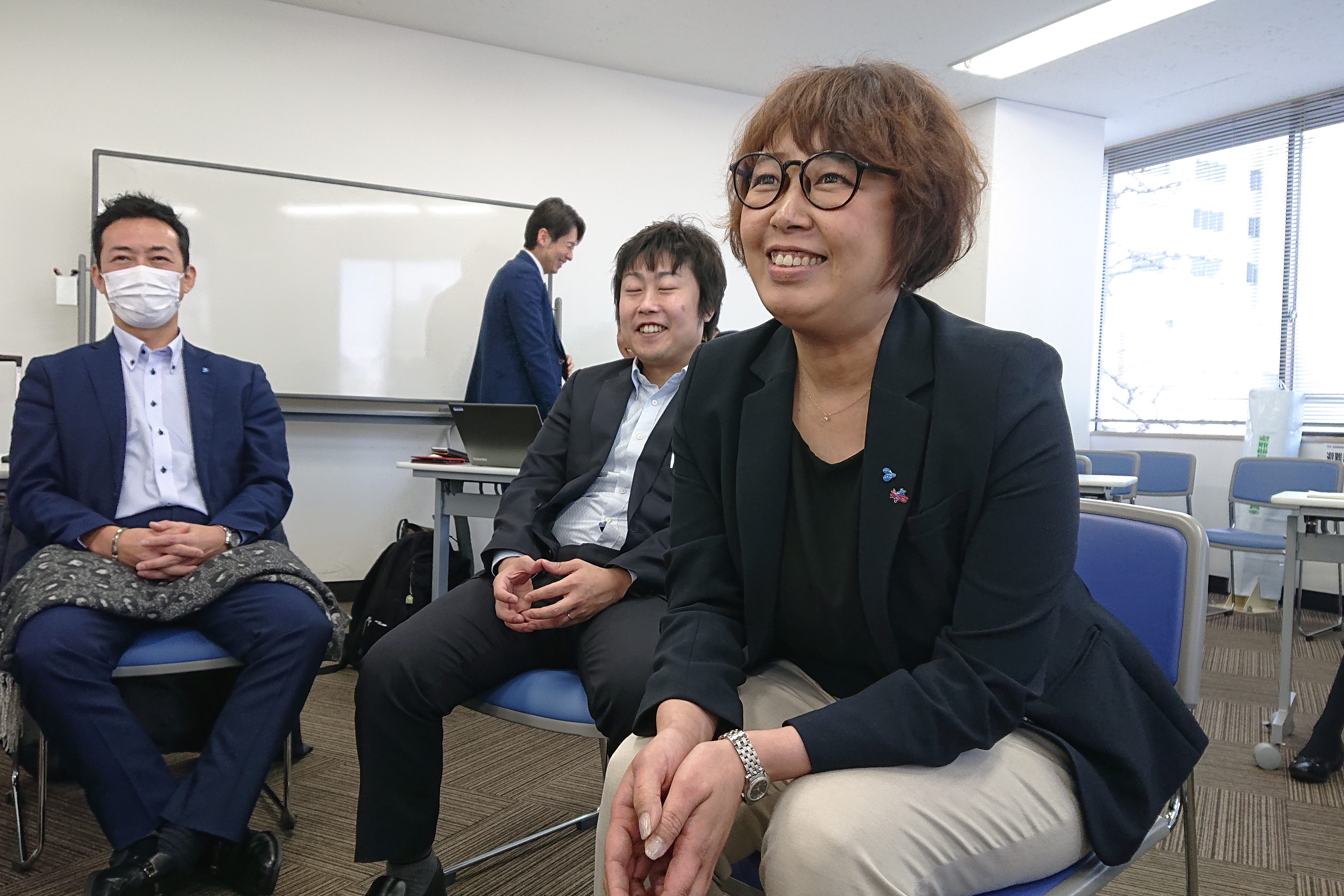 本日は、グループ会社のあなぶきヘルスケア ふくなが次長すやまさんはらださんにも講師としてご参加いただき、新規顧客対応のノウハウをご指導いただきました。わかっているようでできていなかった顧客対応のコツは、聞いていて「なるほど」の連続。営業目線の細かな気遣いを知る機会にもなりました。
