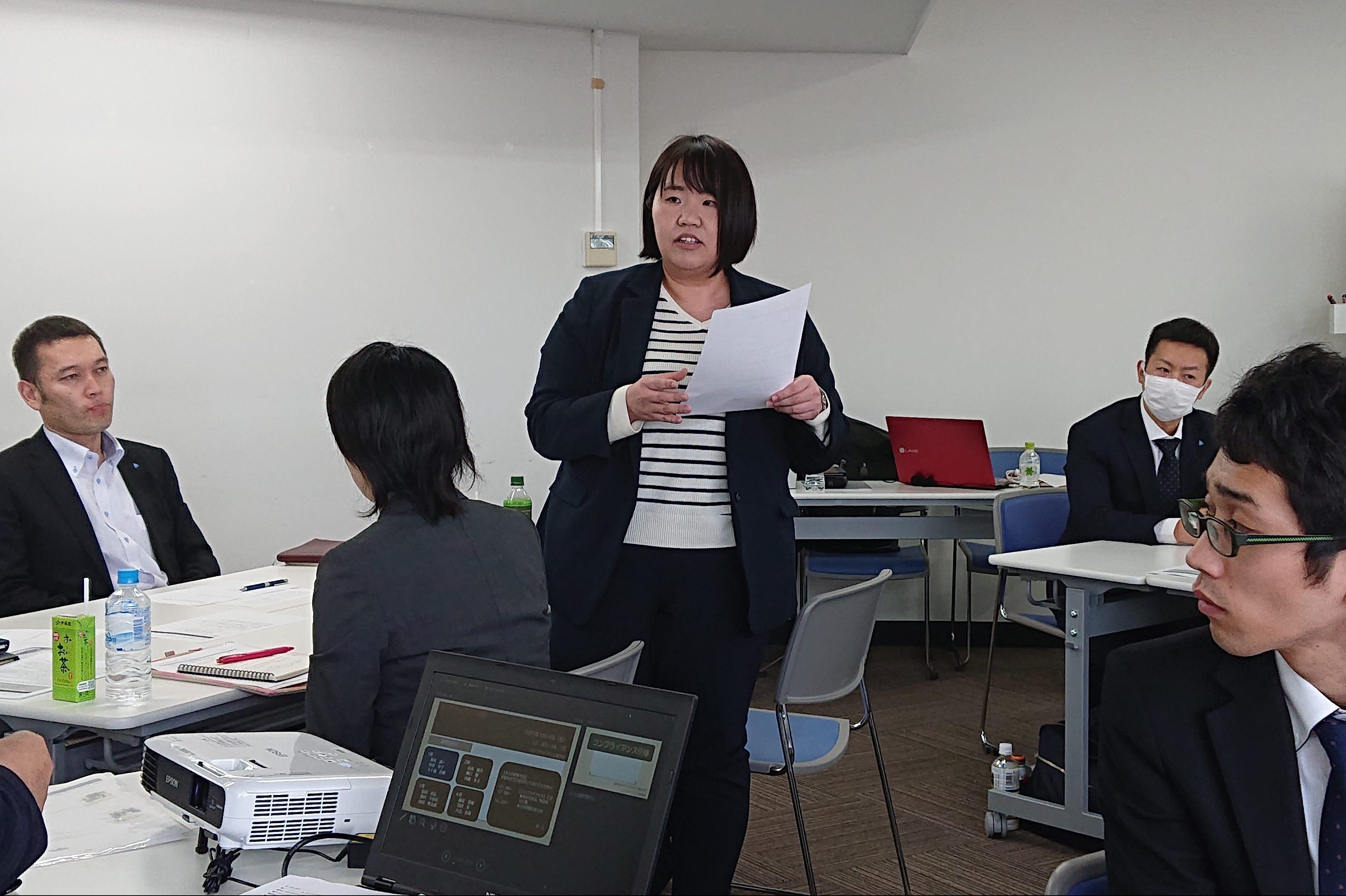 昨日の朝は、「少し表情が硬いかな?」と感じる場面もありましたが、グループワークやロールプレイングで意見交換し、より距離が近づきました。