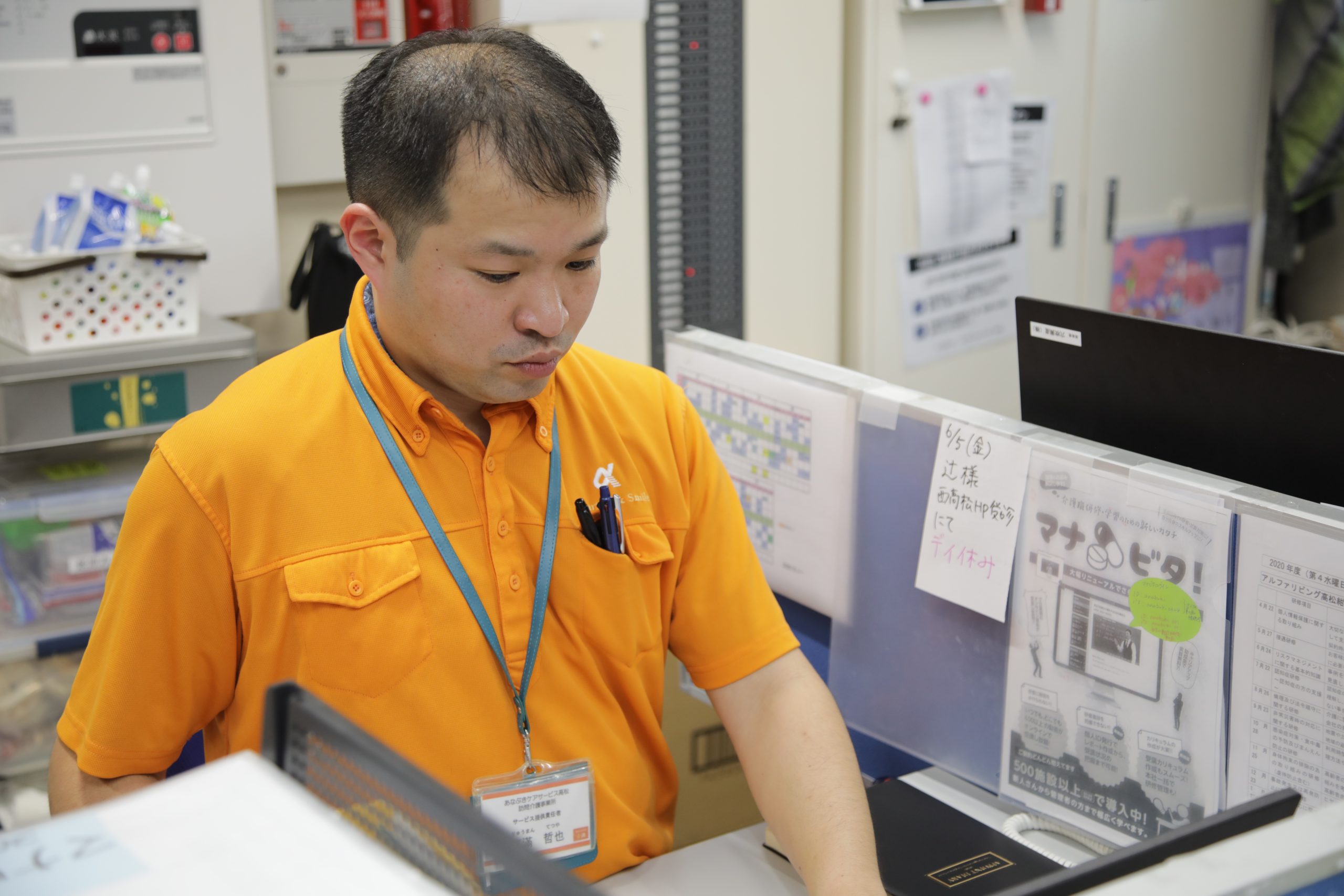 アルファリビング高松紺屋町レジデンスのサービス提供責任者 龍滿哲也さんは、2017年2月に介護スタッフとして入社し、アルファリビング高松伏石南に配属されました。2020年2月にアルファリビング高松紺屋町レジデンスに異動。ご入居者と関わる中で課題と向き合い、目標に向かって努力を重ねている龍滿さんのインタビュー(前編)です。
