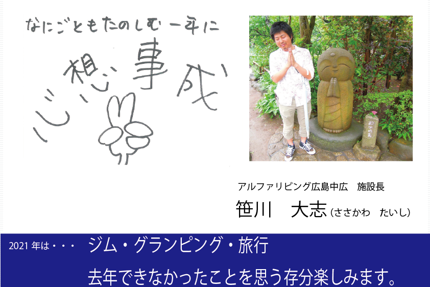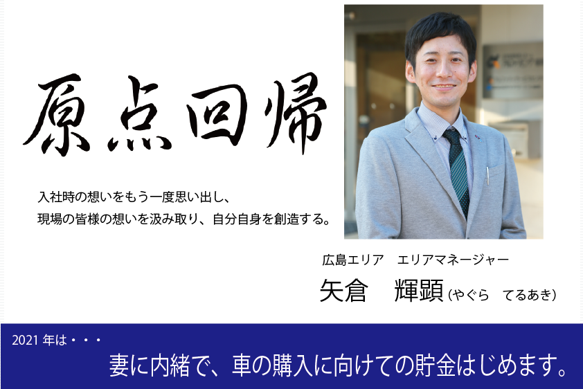 (広島エリア)2021年の目標 会社・組織 広島 アルファリビング広島中広 アルファリビング広島古江駅前 アルファリビング広島吉島通り アルファリビング広島段原 アルファリビング広島観音本町 2021.01.03 1,452views 皆さま、新年明けましておめでとうございます。 2021年、丑年。広島エリアの部門長に本年の目標をお伺いしました。 本年もどうぞよろしくお願いいたします。 投稿者:うつのみや(総務業務チーム) 興味を持ったことは何でもやってみたい性格です。世界を広げようと、趣味で韓国語と英会話を学んでいます。なかなか上達しませんが、一歩一歩、牛歩であっても進んでいるはず・・・(と自分を信じる日々)。とにかく楽しく勉強を続けています。取材を通して皆さんにお会いできるのを楽しみにしています。 記事をもっと見る 一覧に戻る