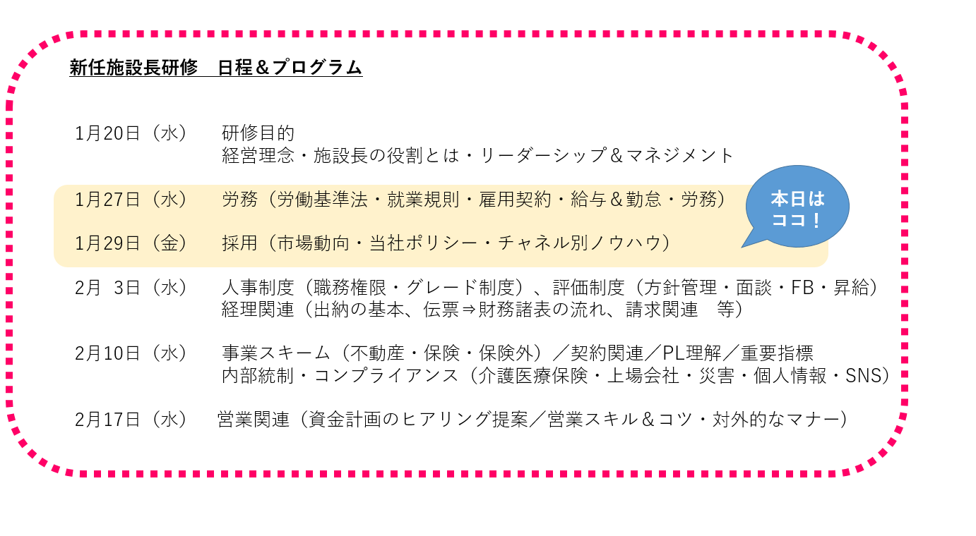 労務・採用について学ぶ 新任施設長研修(2日目、3日目)