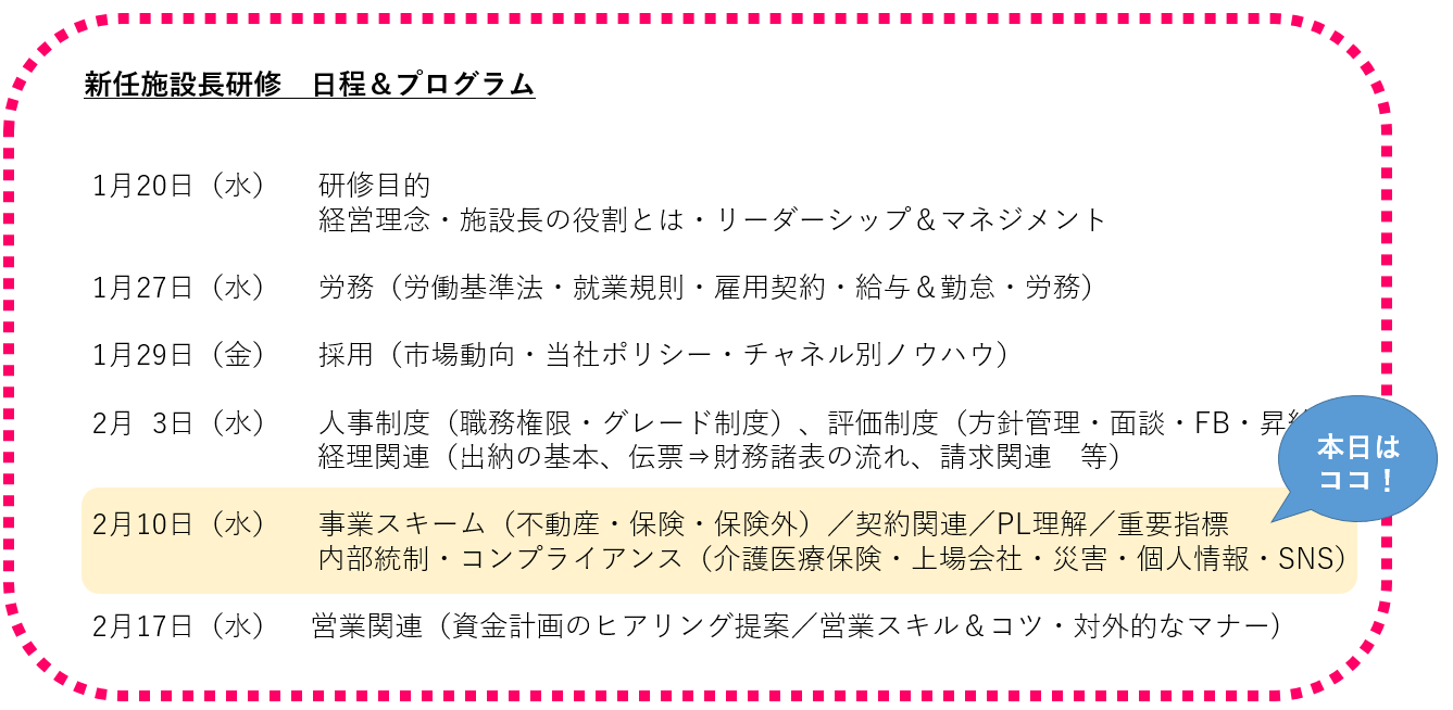 事業スキーム、コンプライアンスについて学ぶ 新任施設長研修(5日目)