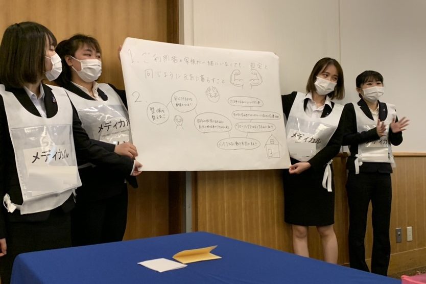 その後の各班での発表では、新卒らしい斬新な面白い意見や視点も多く、私は何度も頷きながら聞かせていただきました。