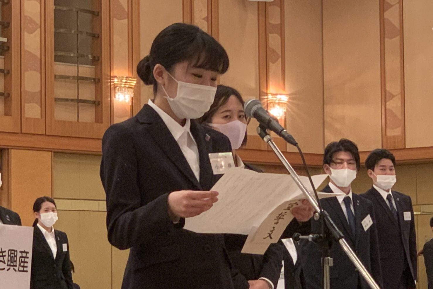 各社の辞令交付が終了した後は、新入社員代表の宣誓です。
