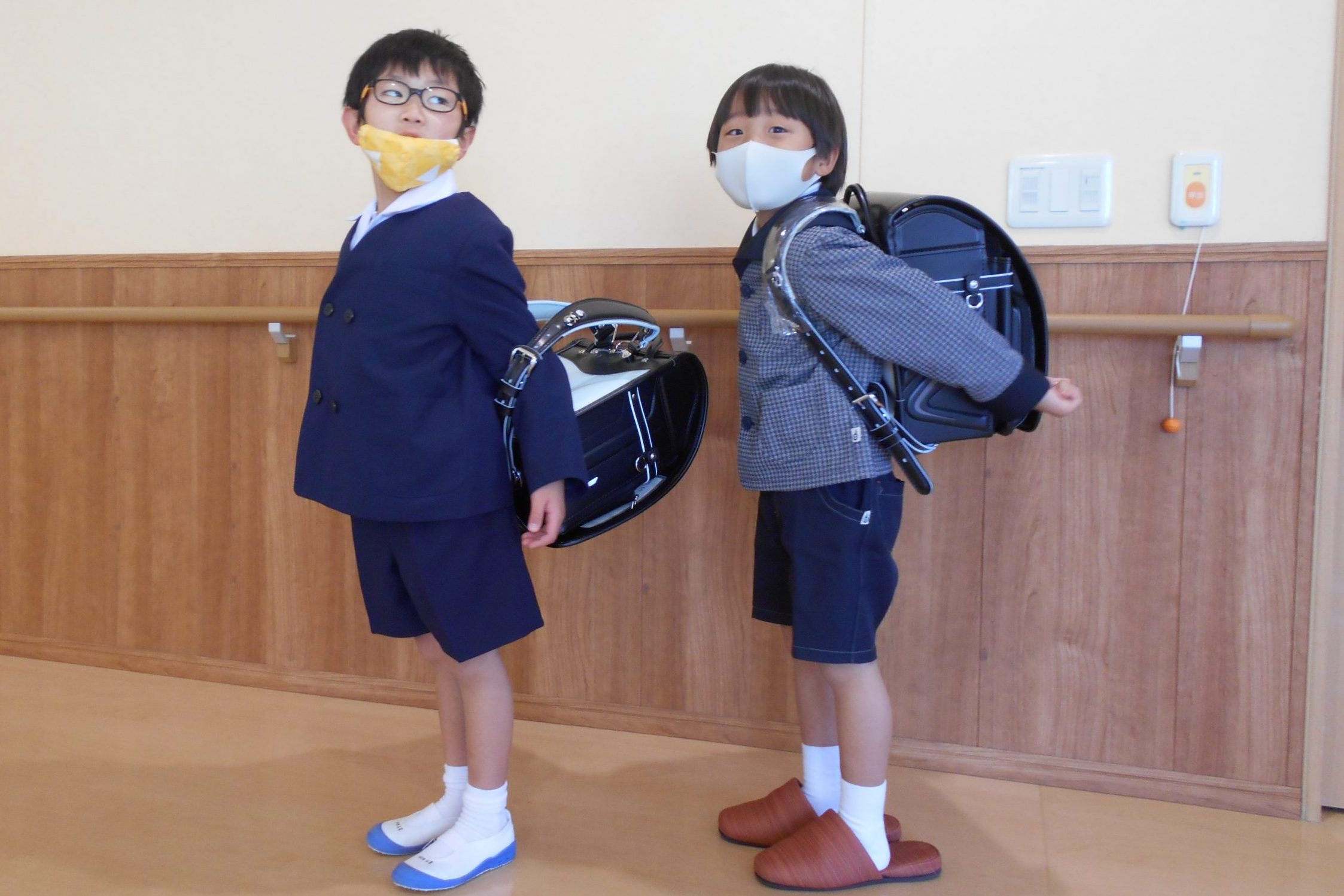 小さい体に大きなランドセル。ランドセルを背負って、早く学校へ行くのが楽しみですね。