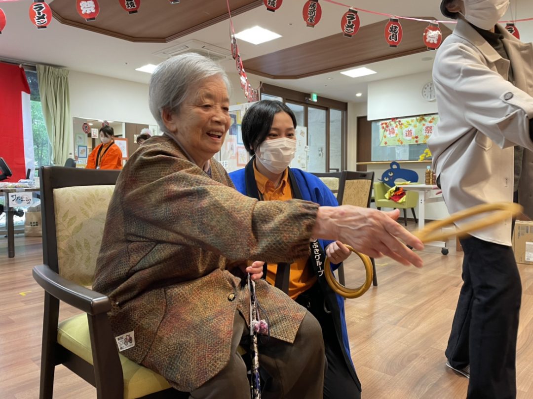 輪投げ、パチンコのゲームでご入居者の皆さんも童心にかえられ景品ゲット!