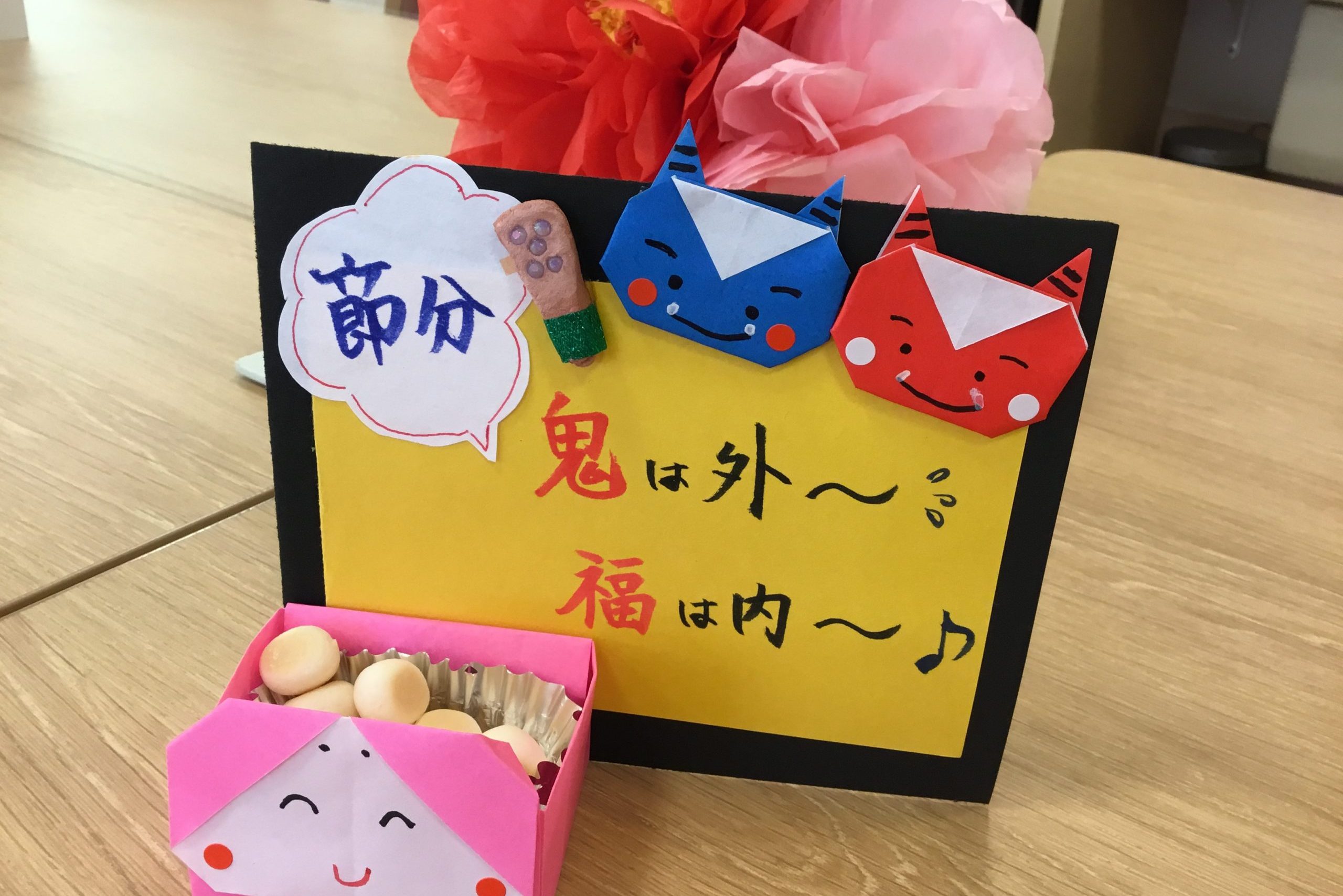 節分が近づくにつれ、ホーム内でも準備が始まります。
