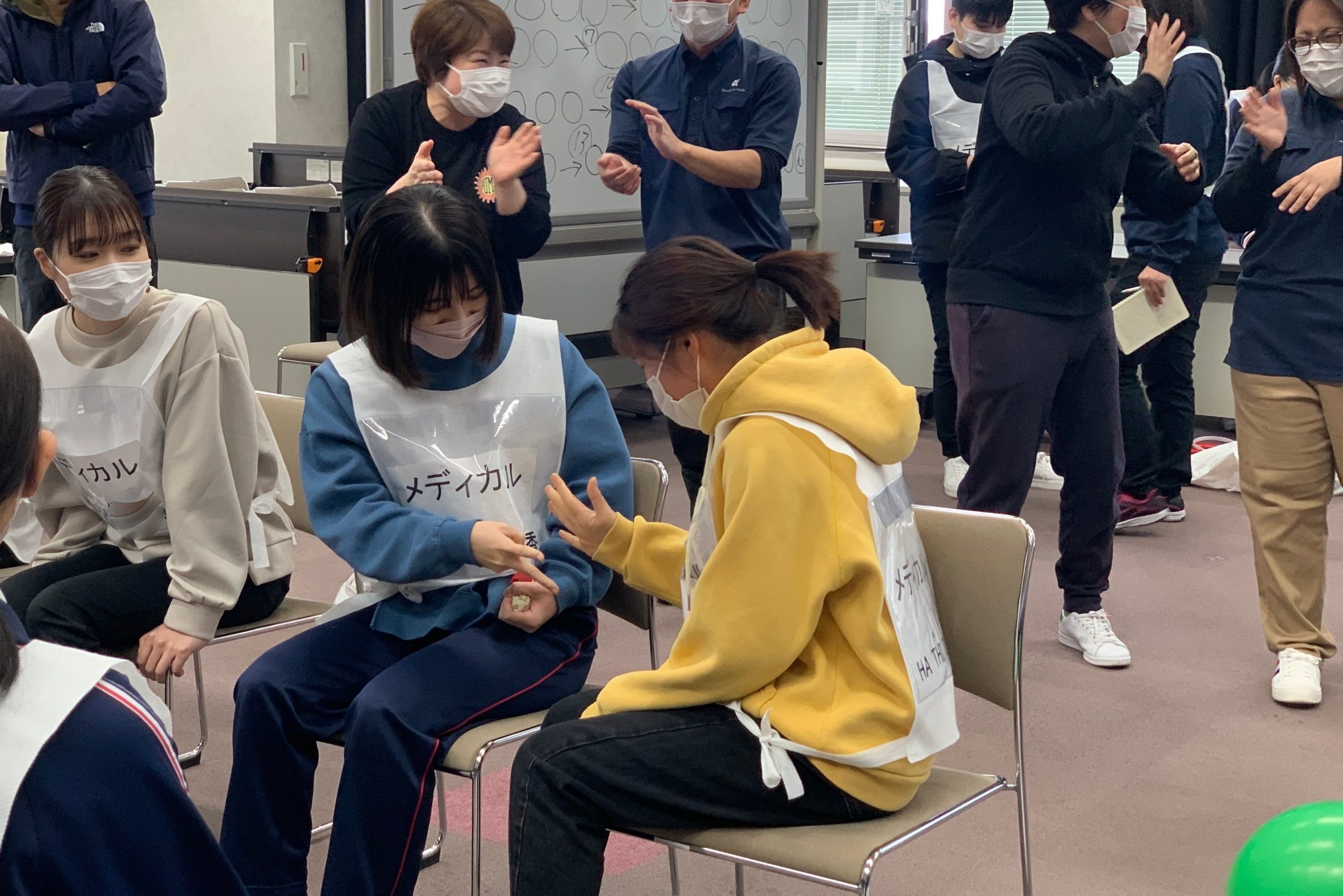 脳の活性化のために、〇×クイズやじゃんけん、しりとりを考えたグループ