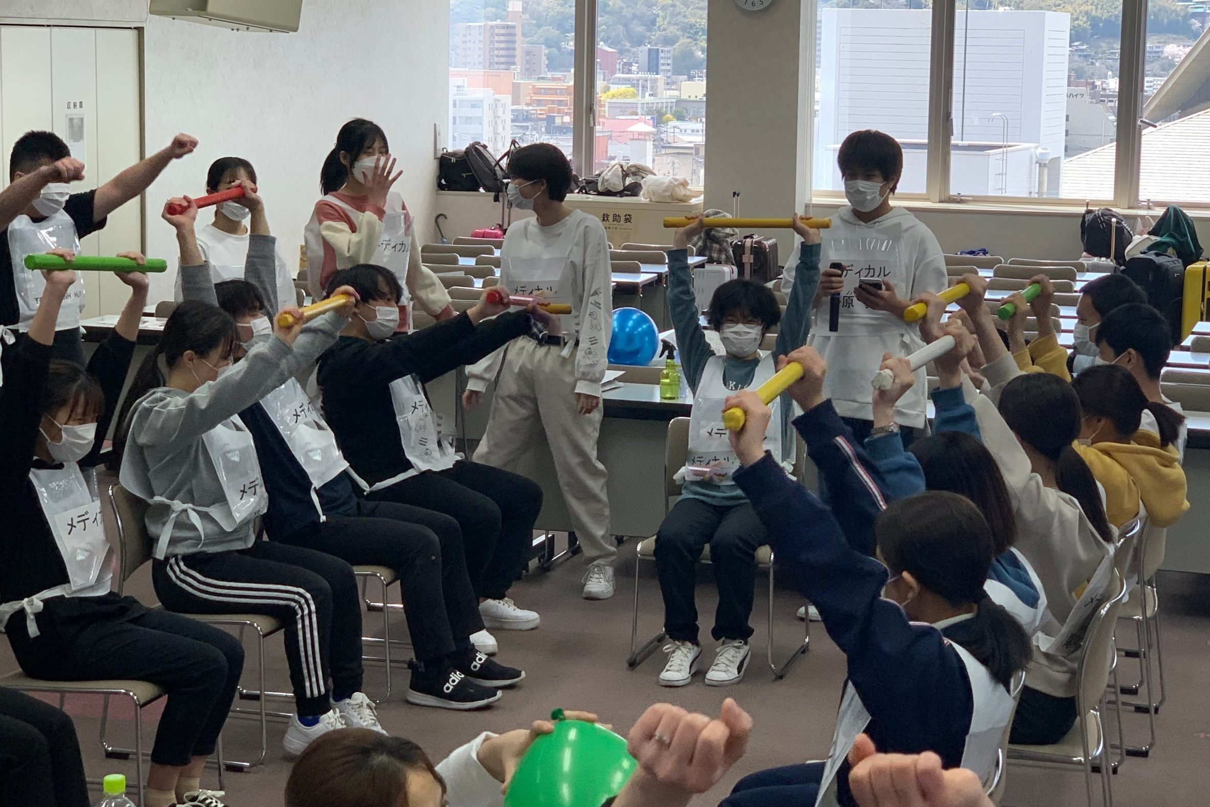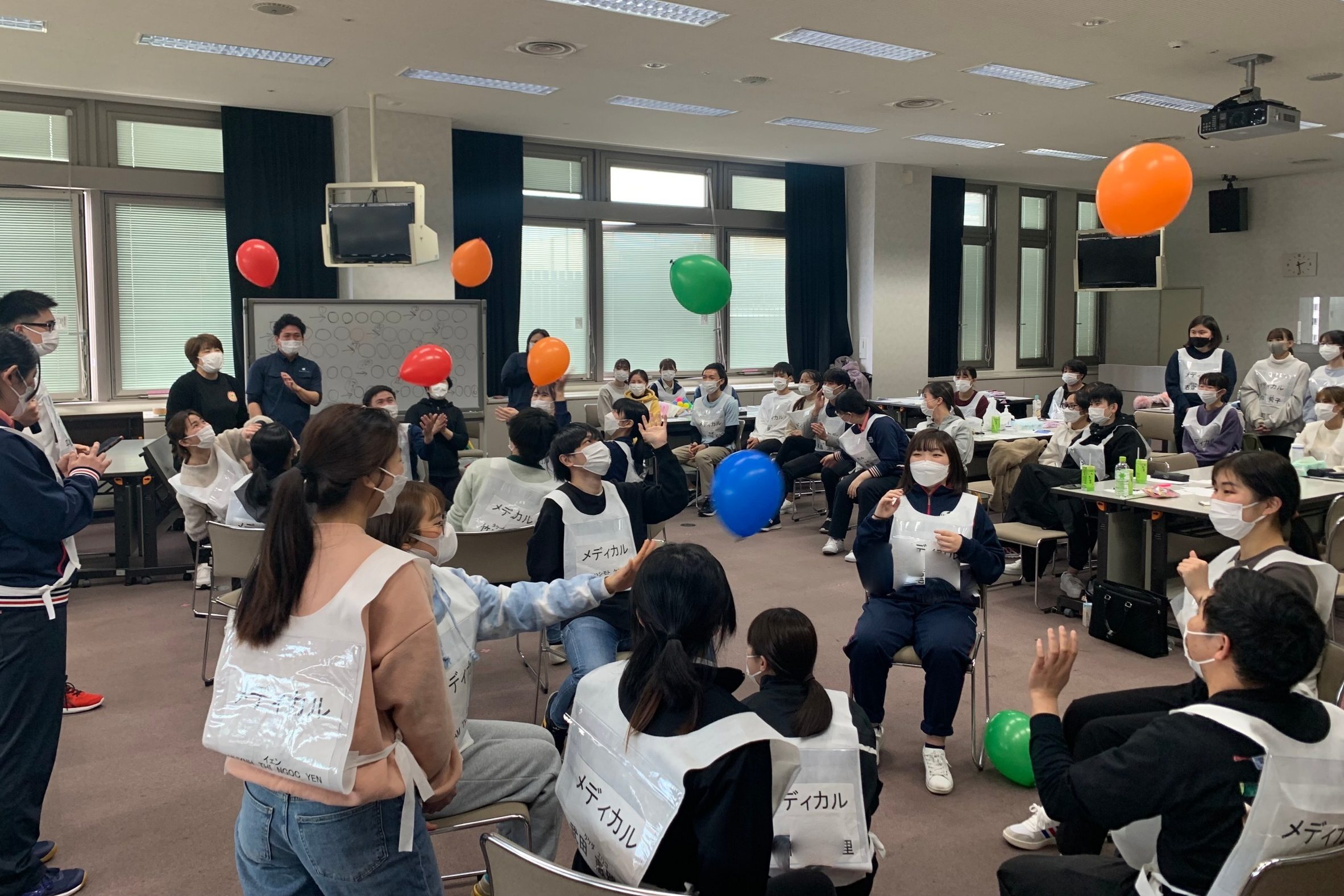 腕の運動やバランス力を鍛えるために、風船バレーやボール運びを考えたグループ
