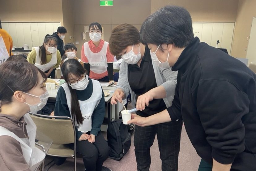 居室清掃の大切さや注意事項、飲み物にとろみをつけてご入居者が召し上がる状態を”体感”しました。