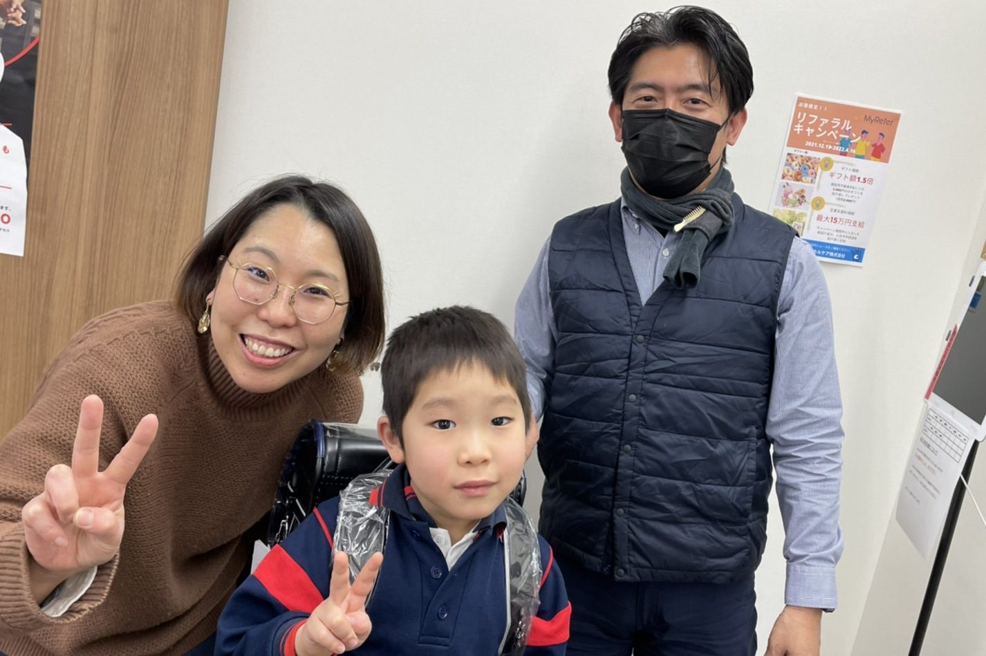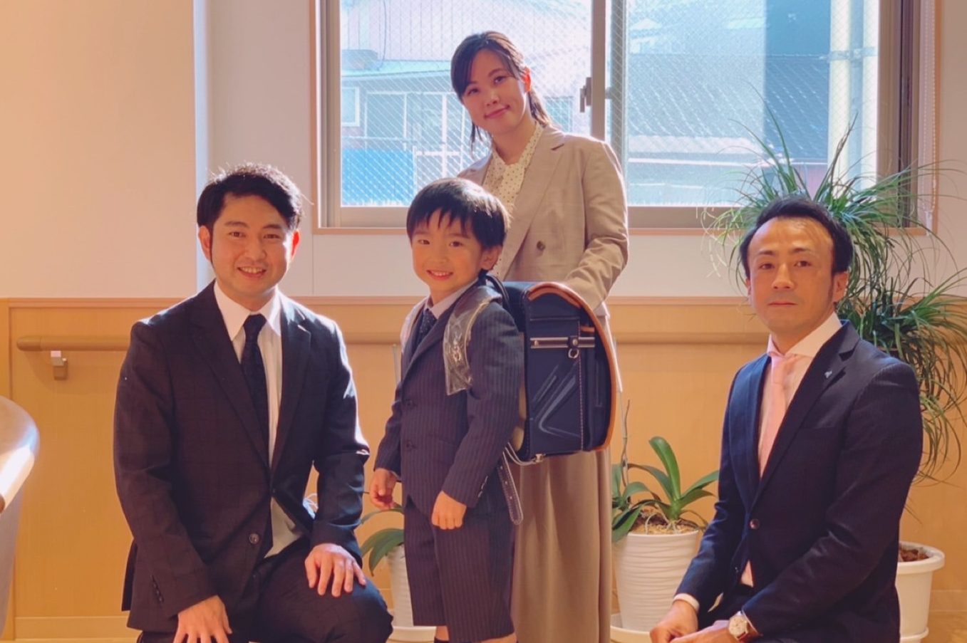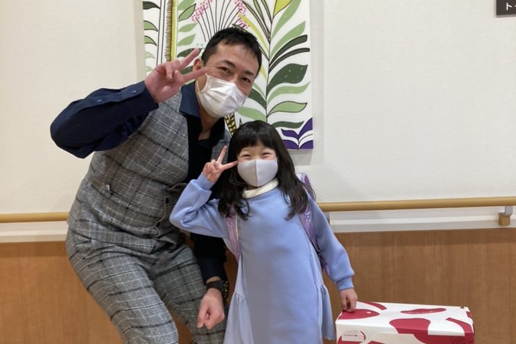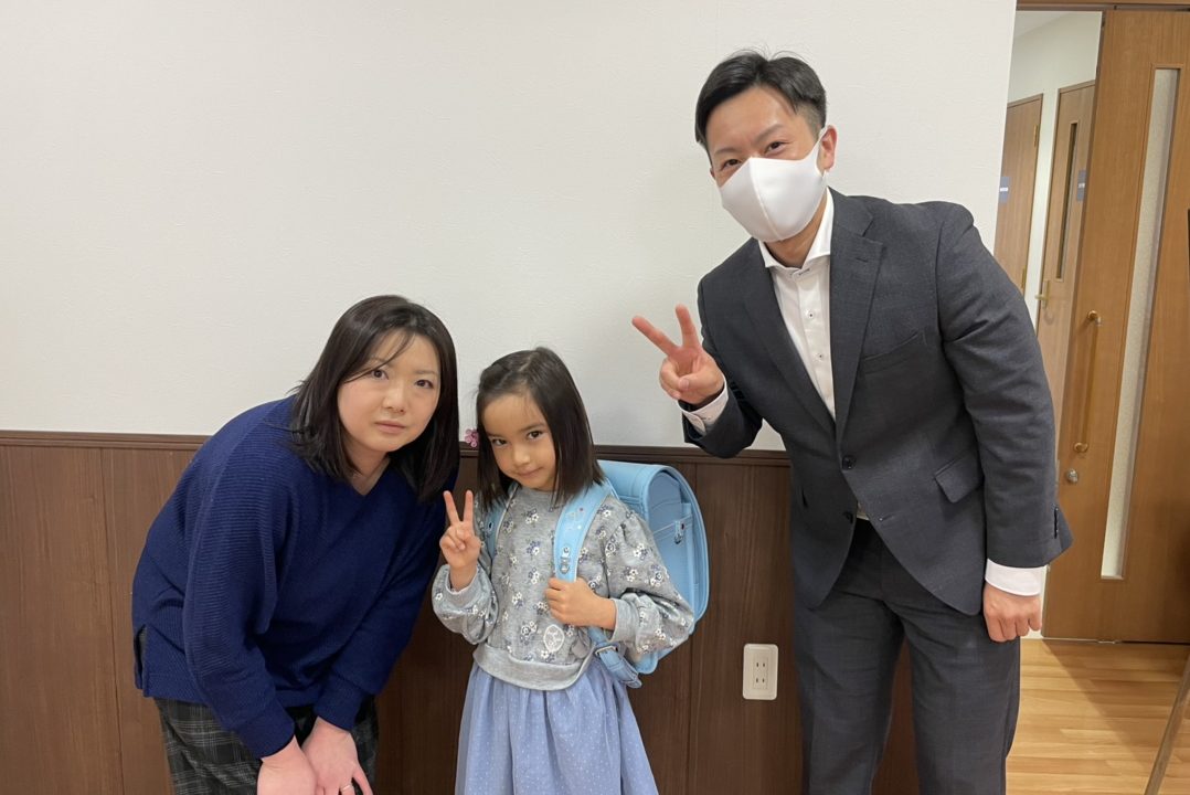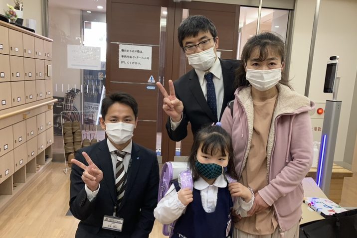 ランドセルはご家族で選んでいただき、パパママが勤務するアルファリビングでお一人おひとり贈呈しました。