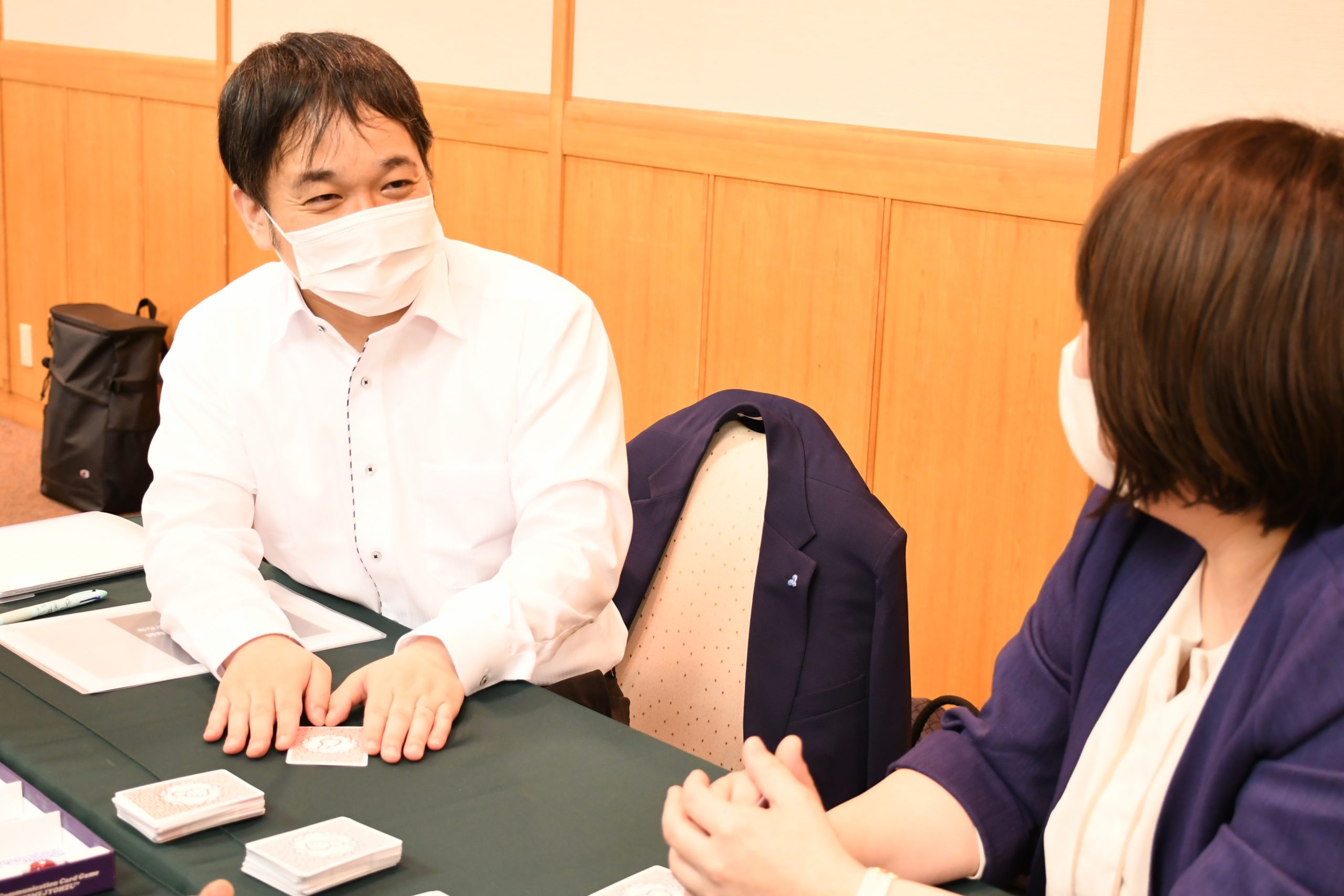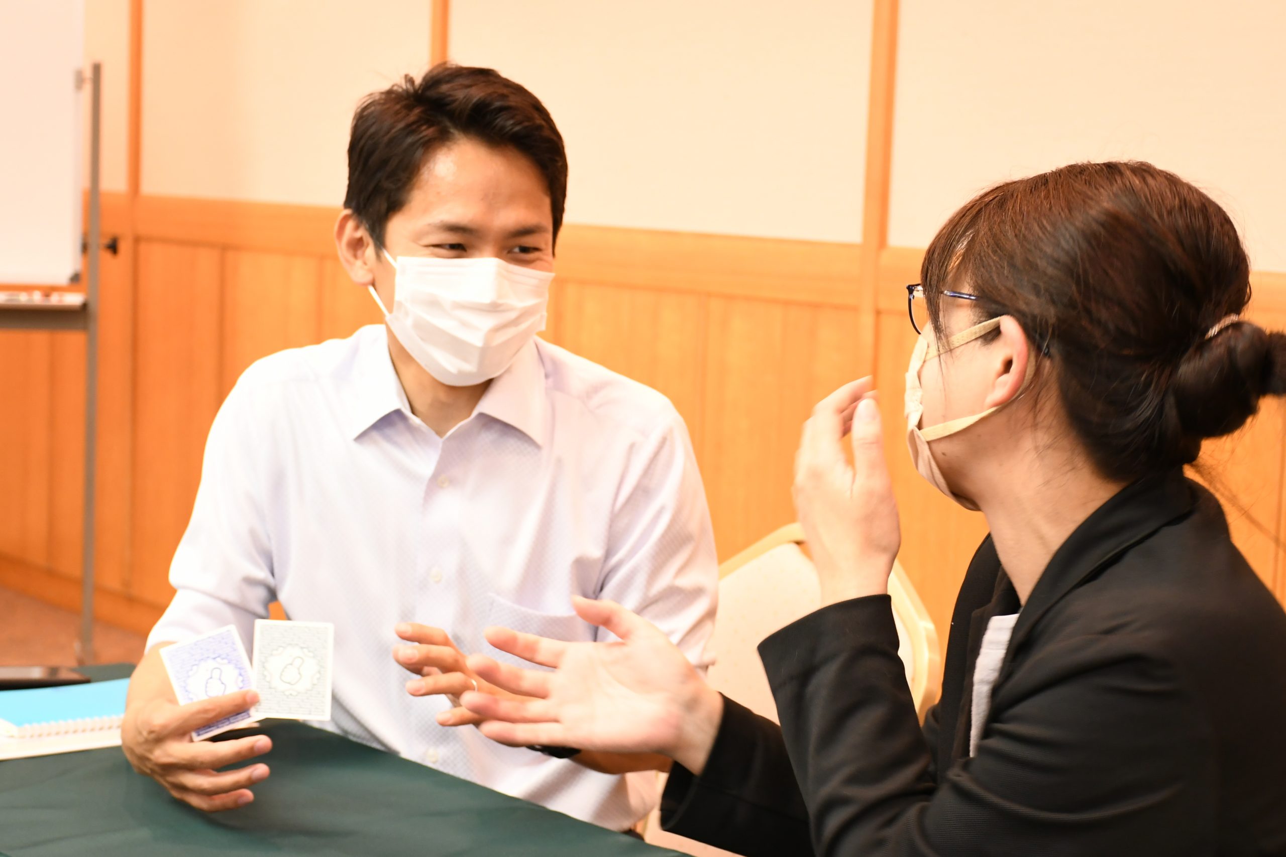 このワークショップでは、「ほめじょーず」というカードを使って、引いたカードに書かれている項目について相手を褒めるワークを行いました。