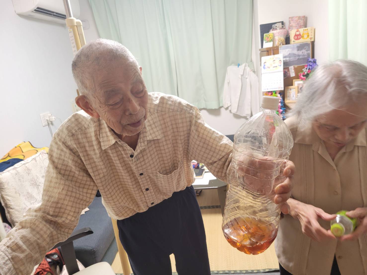 それぞれ別々のデイサービスに行かれたり、お食事も別々で食べられたりことが多いお二人ですが、月に数回お部屋でお酒を飲まれる日があります。