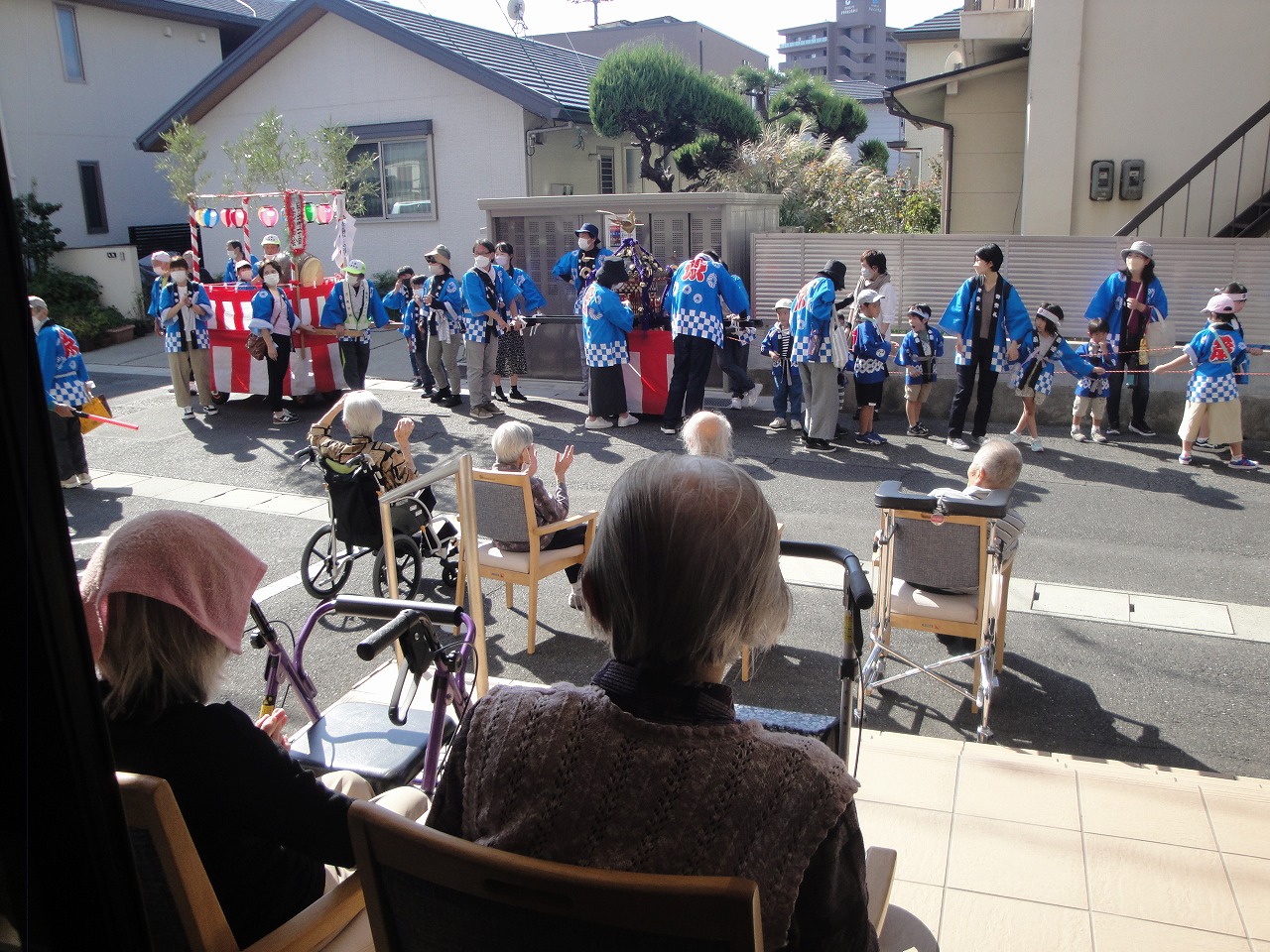 参加されたご入居者の皆さんも、おみこしの掛け声などに合わせて一緒に声を上げるなど笑顔も多く大変楽しまれている様子でした。