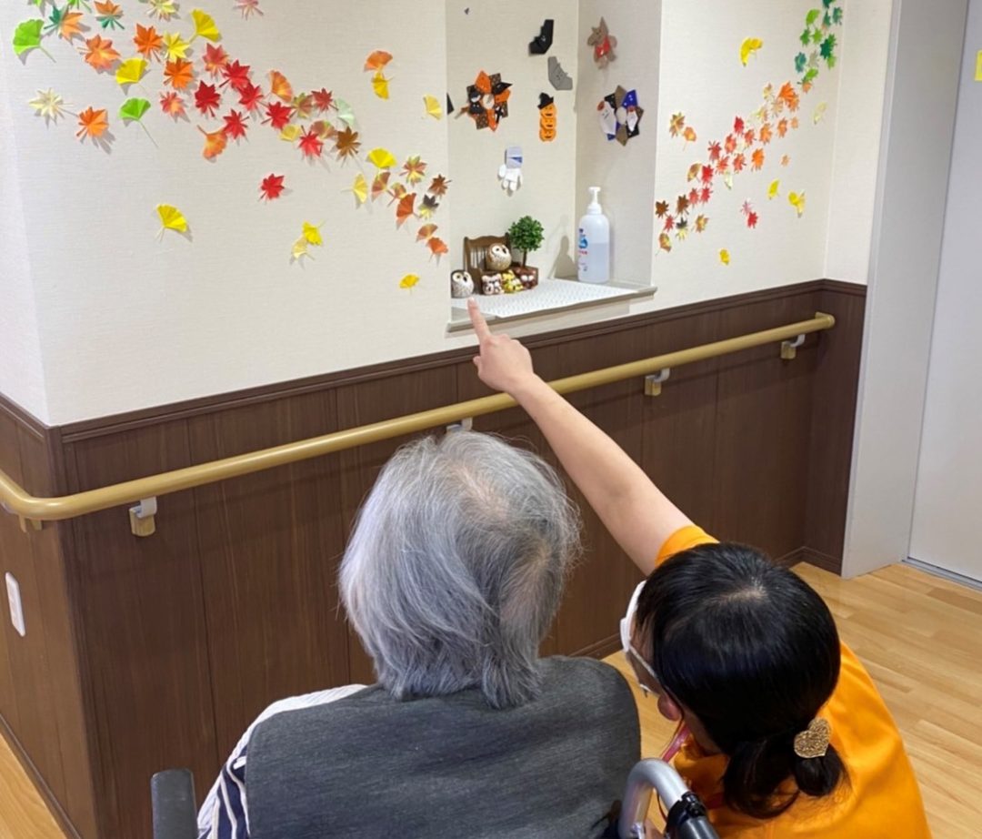 春夏秋冬を感じられる作品を季節ごとに飾っていて、ご入居者から「きれいやね」「どうやって作ったの」など聞いてくださることもあります。