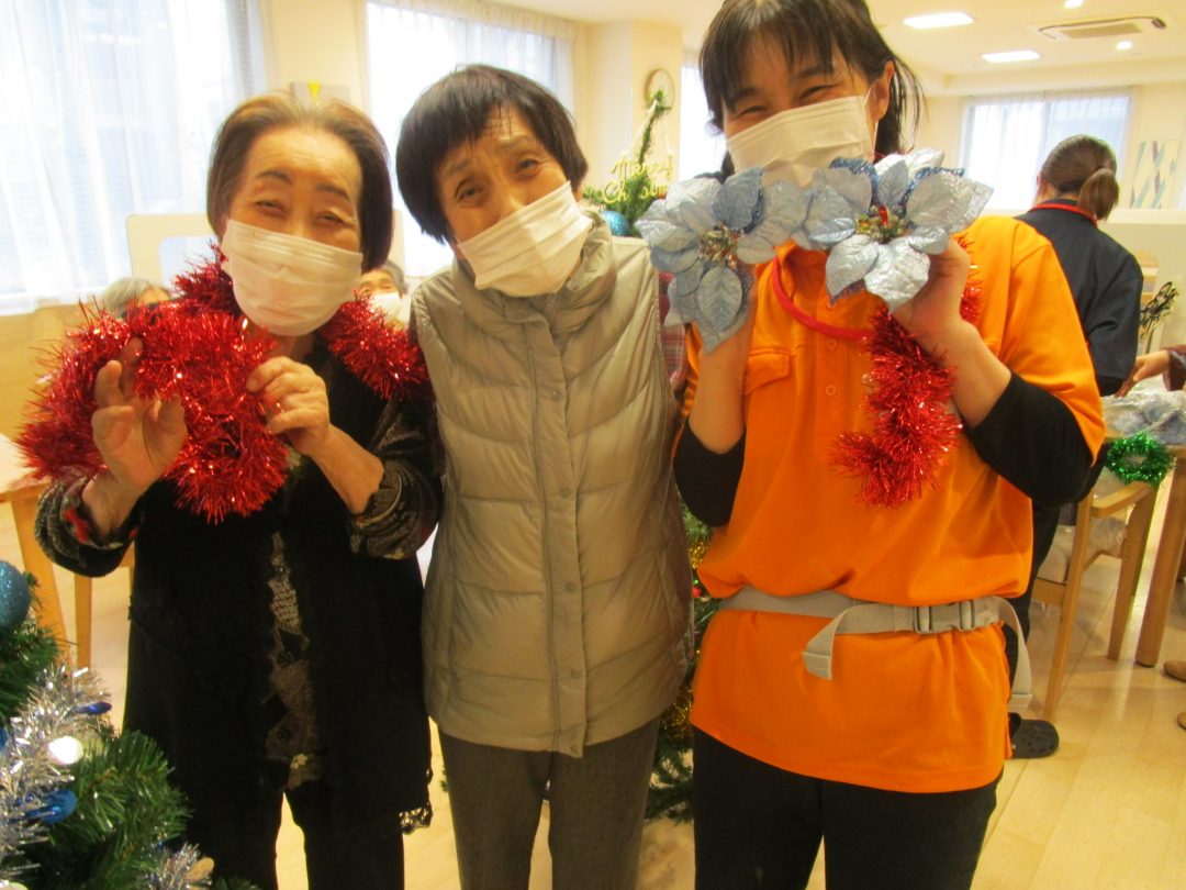 ご利用者に「一緒に飾りませんか?」と声掛けさせていただき、快く引き受けてくださった皆さんに感謝です♡