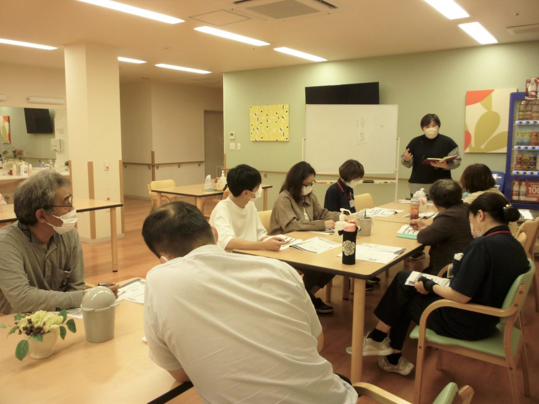 毎月行われている勉強会ですが、サ責のたにぐちさんが講師となり、感染対応・感染予防についてグループワークも取り入れながらの研修が行われました。
