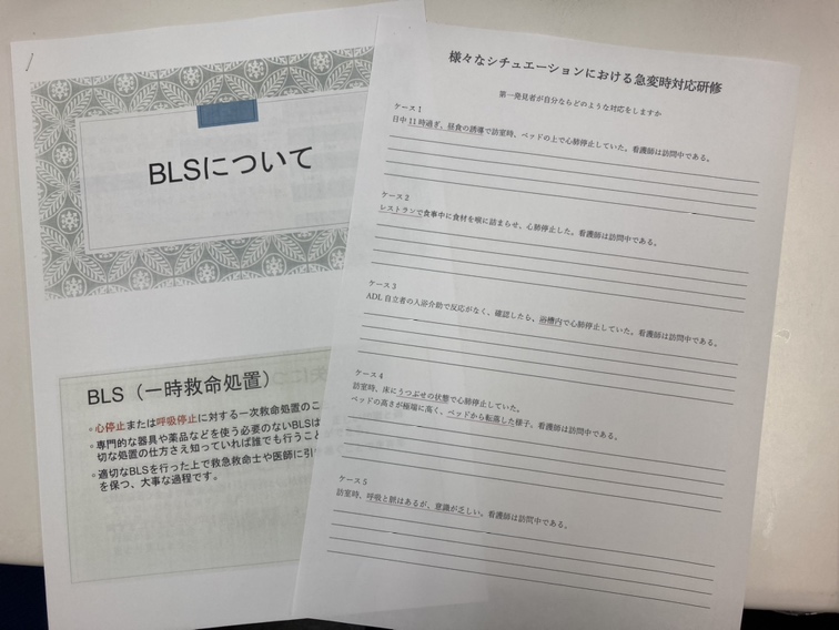 日中、夜間問わず対応を求められる私たちの職場では、看護師を筆頭に定期的に研修が行われます。
