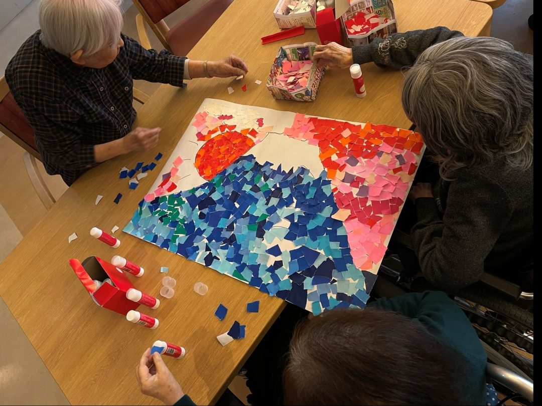 作成中はなかなか答えが分からないとおっしゃられるご入居者もおられましたが、完成品を見て「綺麗だねぇ」と言われる方や富士山に初日の出を見に行かれた時の話をされる方もおられました。
