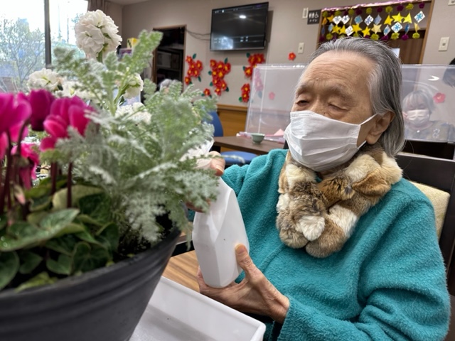 ご利用者さまにお花を見ていただくと、目をキラキラと輝かせながら