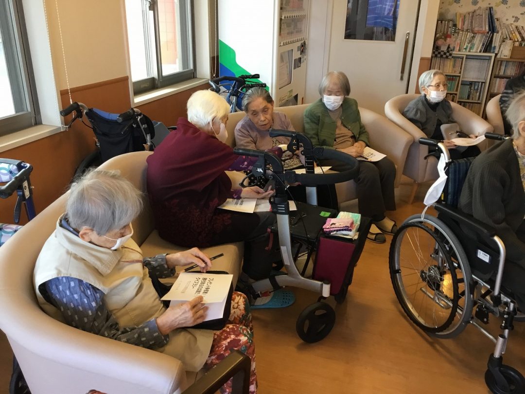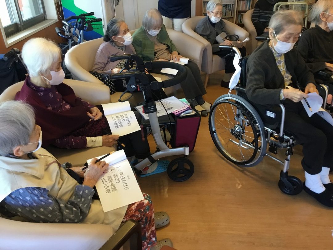 イベントの中で、資料を利用したクイズを行いました。どういった問題が出るのかご利用者同士で話し合っています!!
