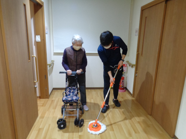 「音がすると思ったらまた掃除してくれよるん?おかげでホーム内が綺麗で気持ちいいよ」と声をかけていただき私たちもやりがいを感じています。