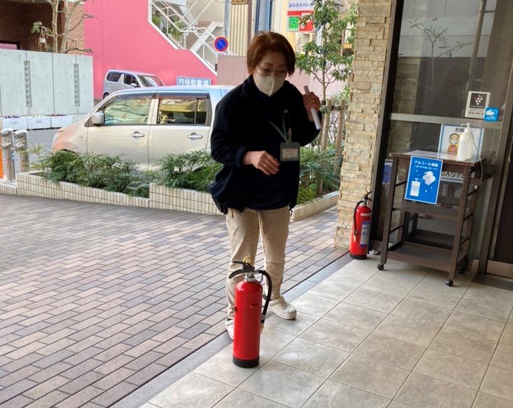 1階に集合した後は、消火器を使った訓練です。