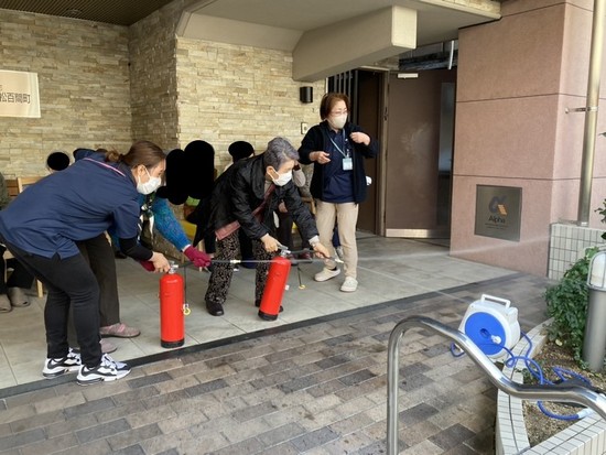 アルファリビング高松百間町では、新型コロナウイルス感染症の影響で、集まっての消防・避難訓練が難しい状況が続いていましたが、今回、久しぶりにご入居者にご参加いただき、消防訓練を開催しました。