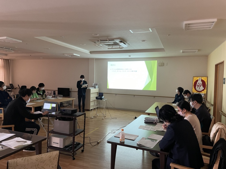 福岡エリアでは、地域交流の一環として、他社の施設スタッフとの交流を深め、それぞれの取り組み事例を発表する「よつばの会(事例検討会)」に参加しています。