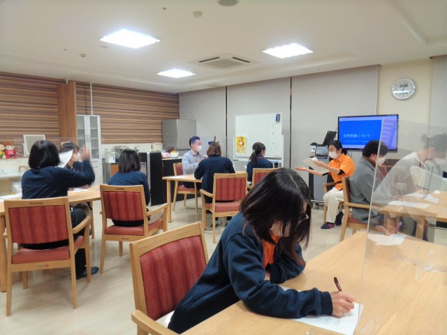 アルファリビング松山久万の台では、介護・看護・デイのスタッフ全員参加で、毎月全体会を行っています。