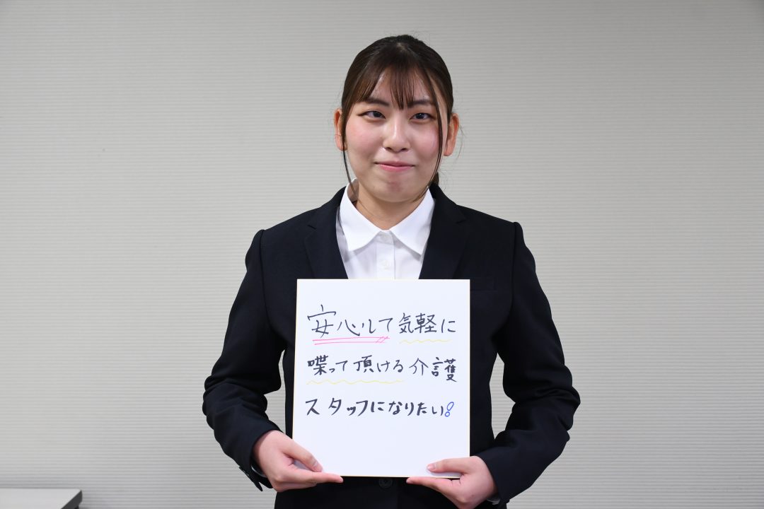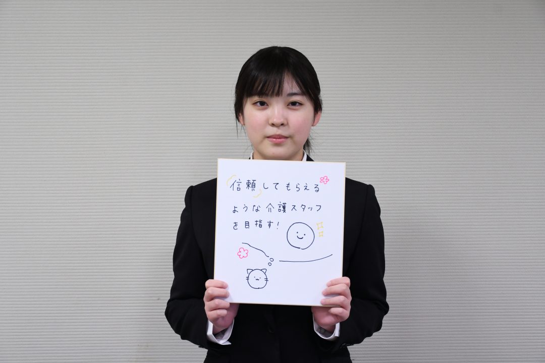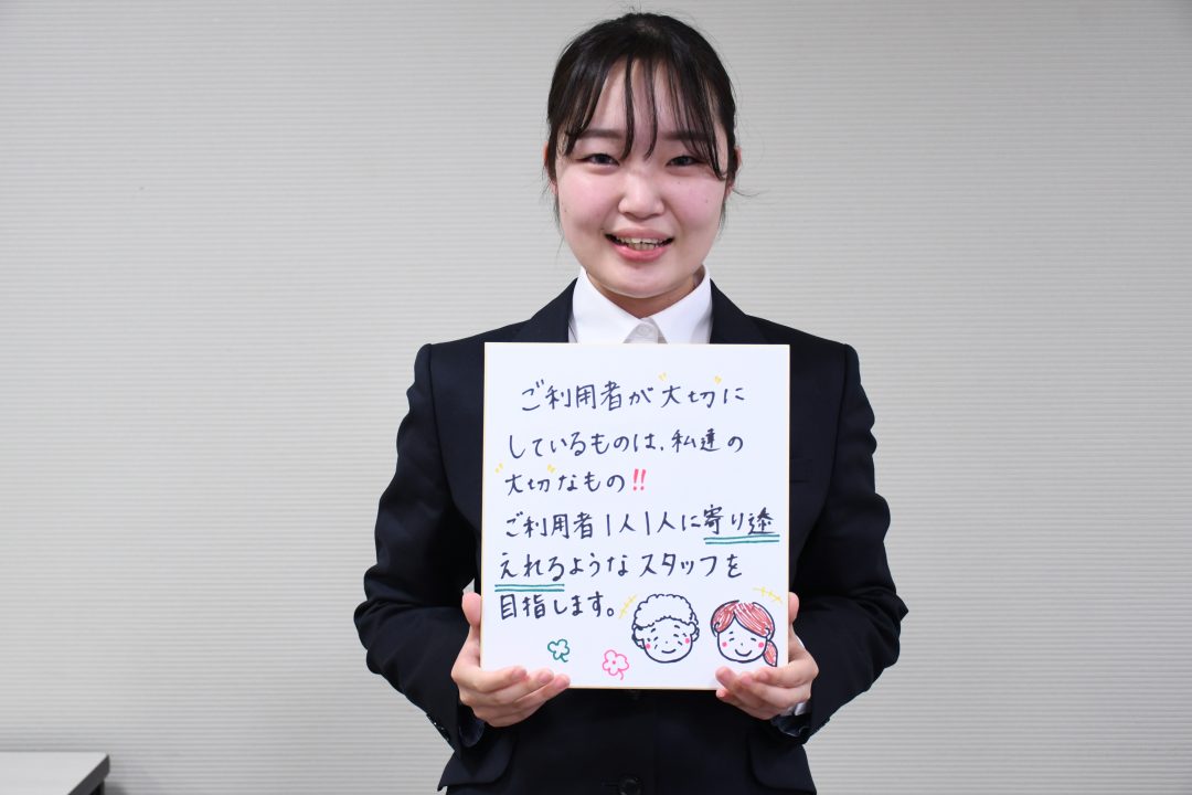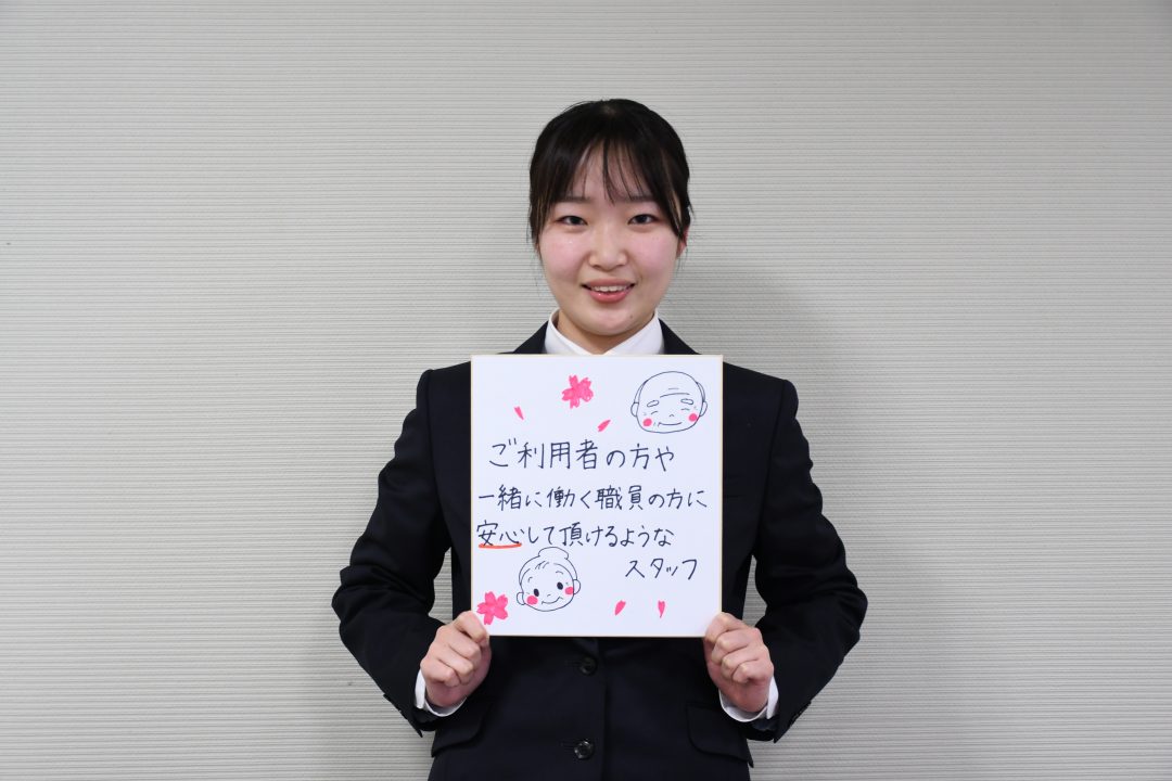 以下は、あなぶきメディカルケアで働く決意をしたためてもらった色紙を持った新入社員の皆さんです。