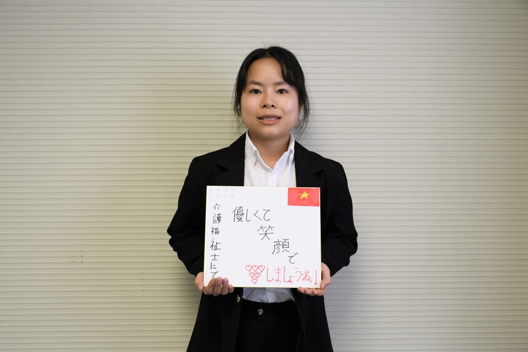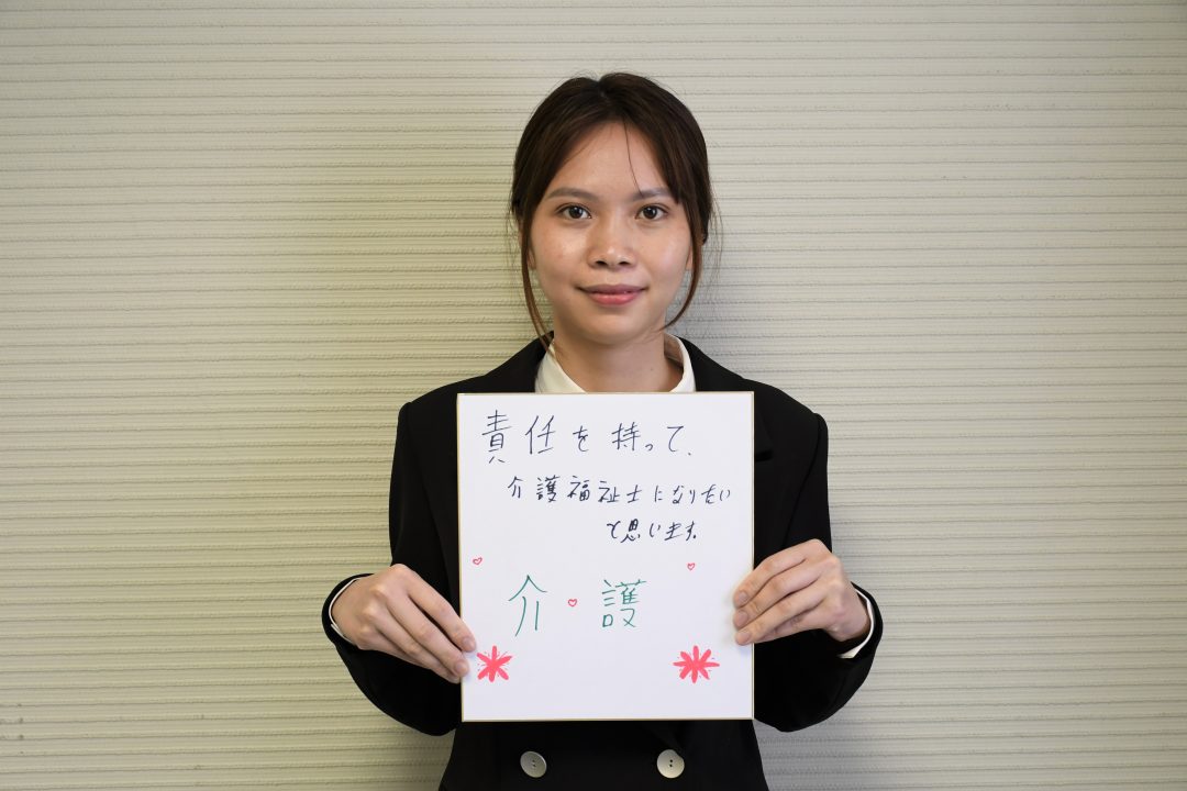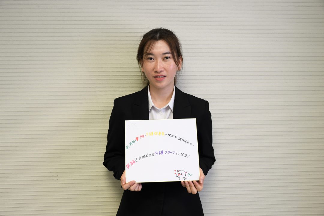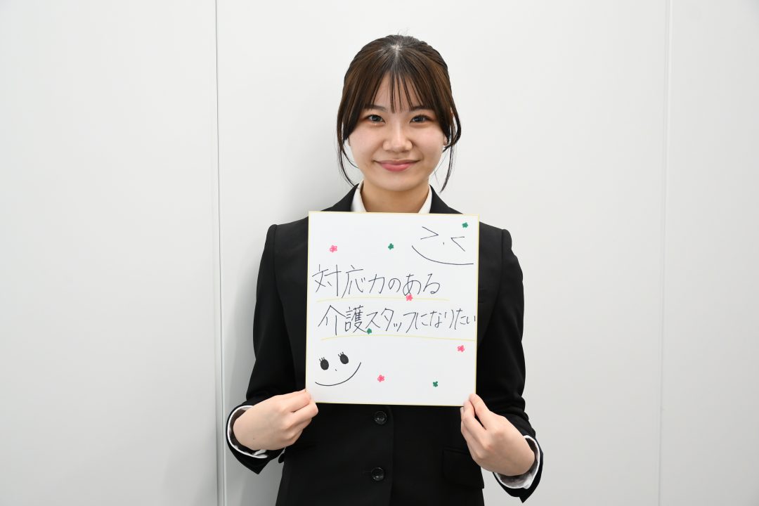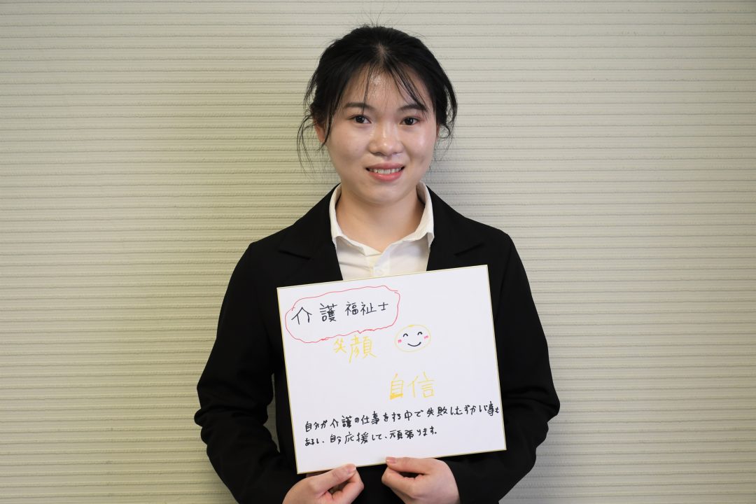 以下は、あなぶきメディカルケアで働く決意をしたためてもらった色紙を持った新入社員の皆さんです。