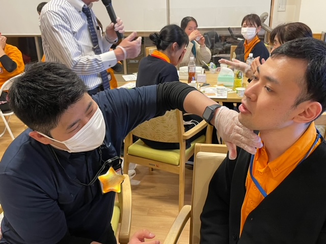 講師は言語聴覚士のおおいし先生で、エリア内の約30名が参加し、実際に介助方法の実技を交えながらの講義を開催してもらいました。