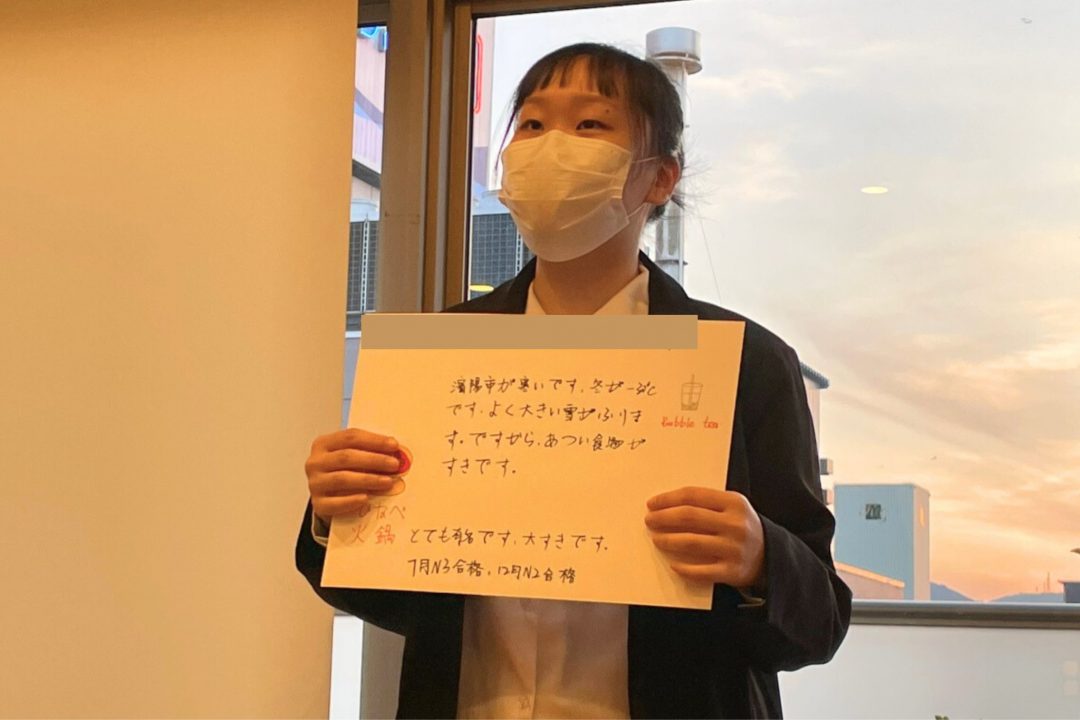 また、2017年に来日し、先日外国人初のサ責となったアルファリビング高松松縄のイェンさんから後輩に向けたメッセージをいただきました。