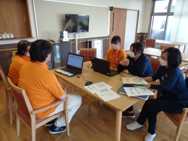 アルファリビング松山久万の台では、毎月第4火曜日に職種関係なくアルファリビング松山久万の台で働くスタッフが参加する研修を行っています。研修内容や研修資料の作成は、各担当のスタッフが行っています。