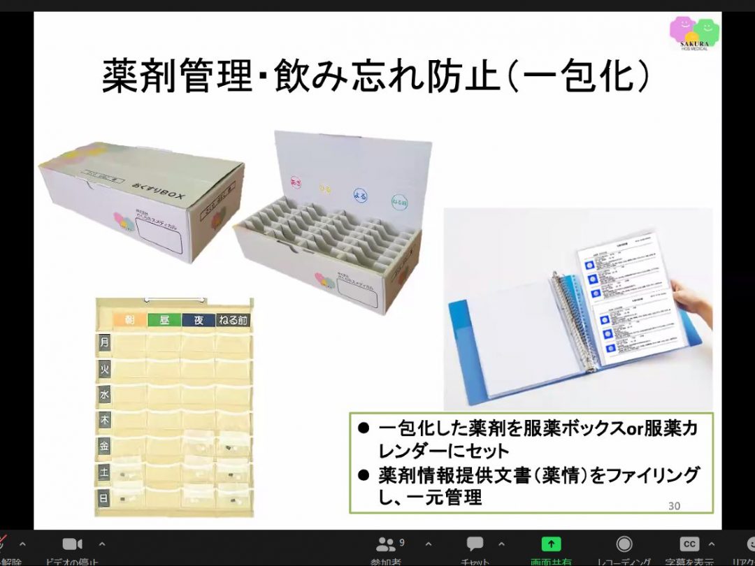鹿児島エリアでは、ご入居者の薬を管理していただいている薬局(株式会社さくらホスメディカル)様に、介護職向けの薬の研修を開催していただきました。