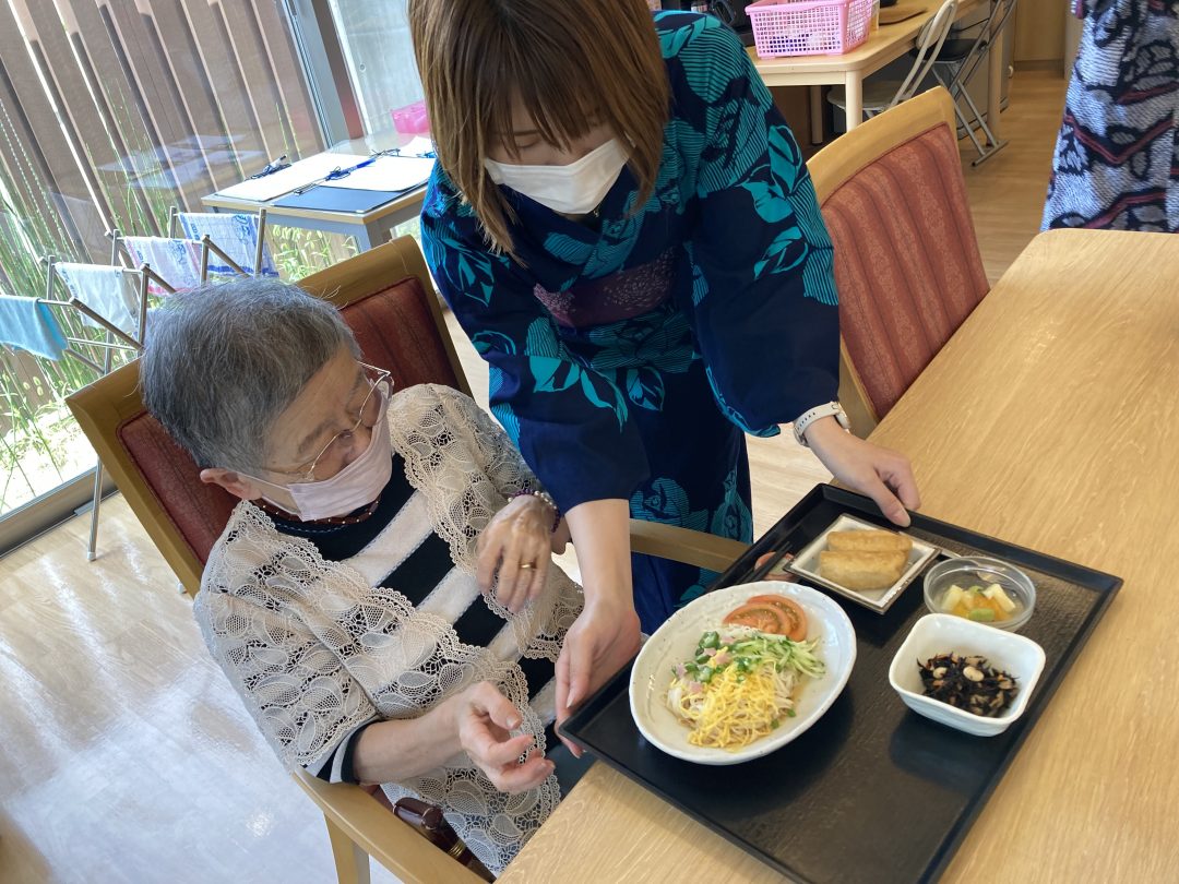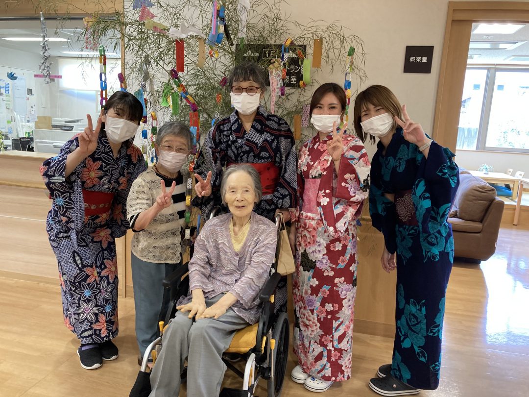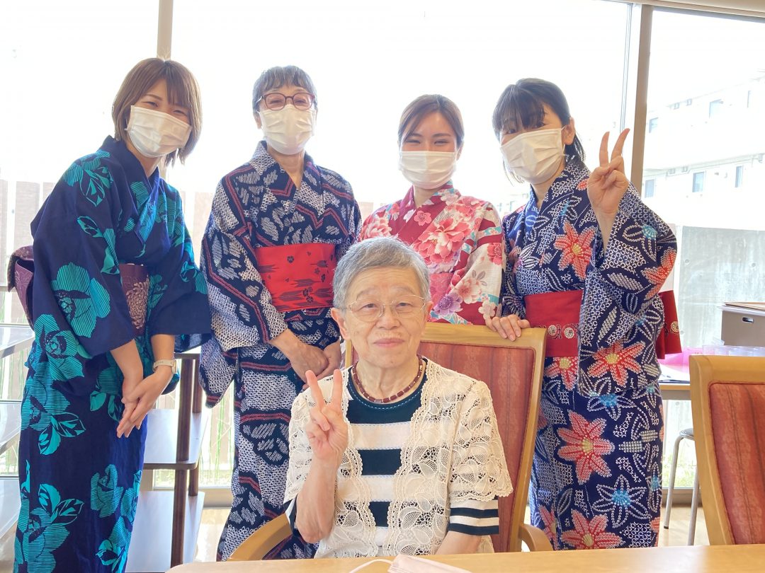 浴衣を着たスタッフはとてもかわいく涼し気で、ご入居者も大変喜んでいただくことができました。猛暑も続き外出の機会が減っているご入居者もいますが季節を感じていただくことができたと思います。