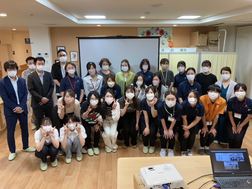 今年は高松本社と、アルファリビング福岡七隈&アルファリビング福岡原のスタッフが集合したアルファリビング福岡七隈の会場とアルファリビング博多南会場をリモートでつなぎ、福岡エリアで合計約60名のスタッフが参加しました。