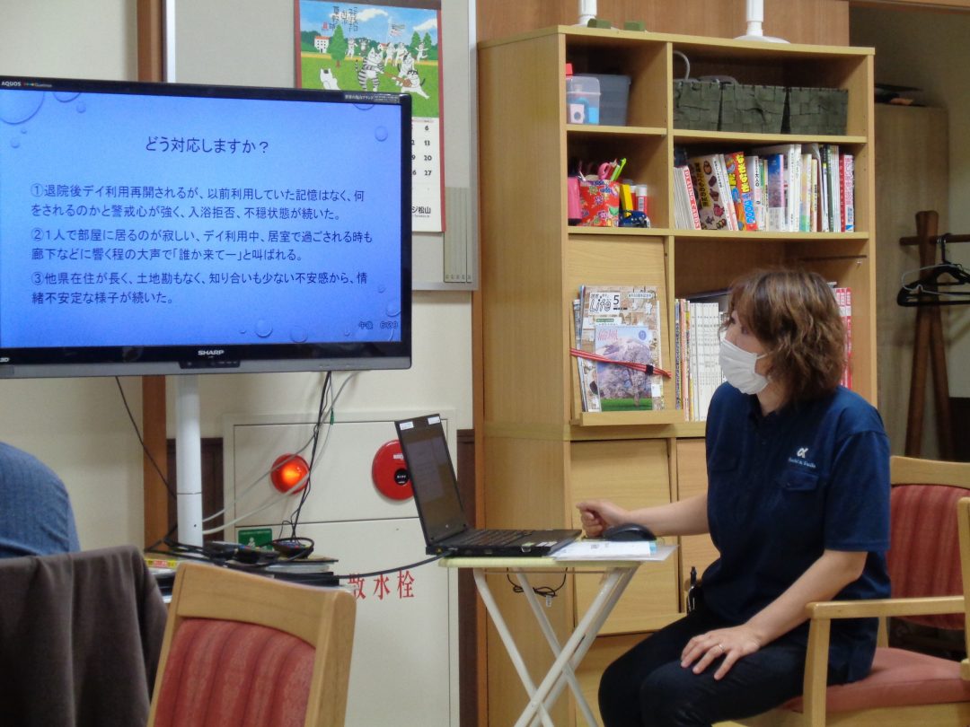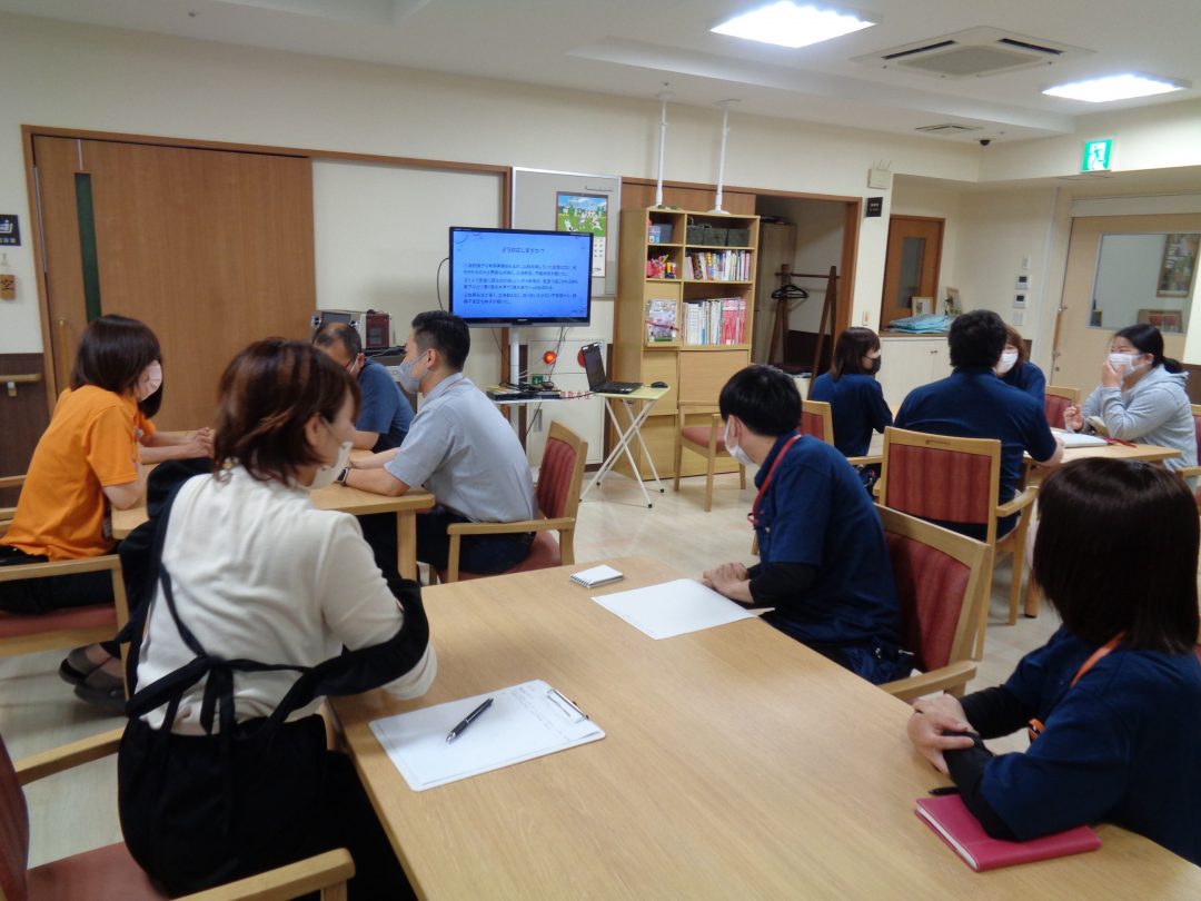 アルファリビング松山久万の台では、毎月の全体会で「委員会研修」と「ヘルパー研修」をスタッフが主体となって行っています。