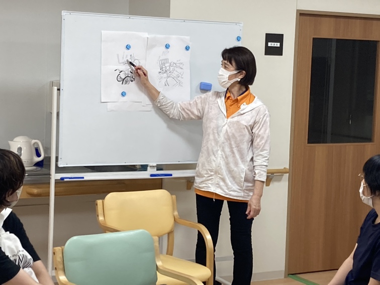 グループワークで委員会メンバーがイラスト事例を出し、危険因子をまず見つけてもらいました。