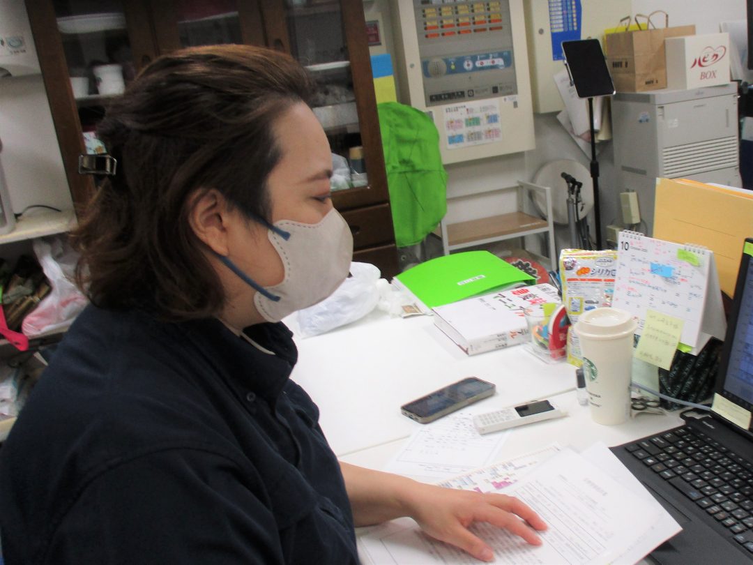 ますかわさんは、ご入居者に寄り添ったスケジュール調整や、私たち介護スタッフに優しい心遣いの業務内容作成、他事業所とのスムーズな連携、研修計画において私たちのスキルアップをサポートし、訪問介護業務も担当し、その他にも様々な業務を行っています。まさに当施設でのオールラウンドプレーヤーです。