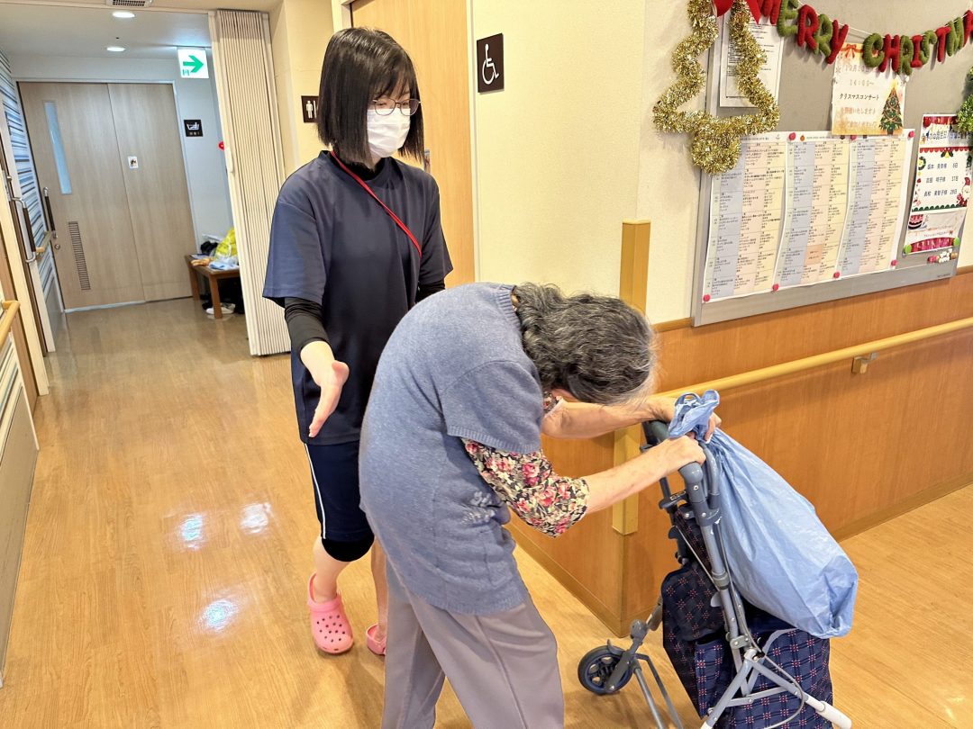 こうのさんは毎日、ご入居者やスタッフに、はきはきしたあいさつをされる気持ちのいい方です。少しおっちょこちょいでかわいらしい一面もある方ですが、仕事に対しては丁寧に対応されています。